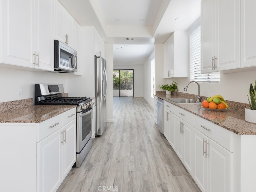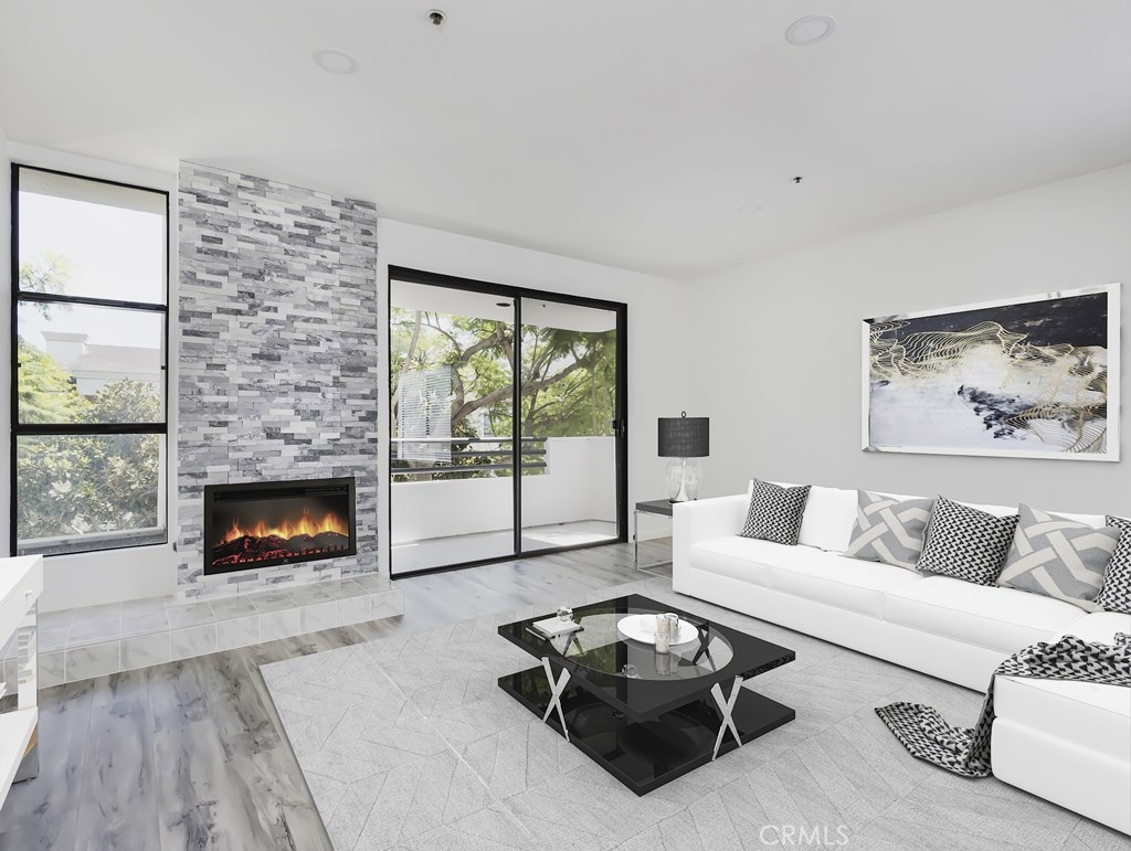 Spacious and newly-remodeled front facing unit (2 bed+2 bath+den+office) with double door entry in a quiet tree-lined street. The residence features well-designed open living spaces, high ceilings with West, South & East exposures and lots of natural light. The gourmet kitchen with granite counters & new S/S appliances adjoins the dining & living room with a charming fireplace & a balcony surrounded by greenery. The master suite has a walk-in closet and a beautiful bath with dual sinks, spa tub, separate shower and a balcony perfect for soaking in afternoon sunshine. The second bedroom has a large closet and is close to a full bath. The office area is a perfect space to work from home. The lovely den is a great flex space for dining, office, play, or media & opens to the third balcony with BBQ gas hookups. Carrera floors in bathrooms and balconies & 7.5 inch wide-plank wood floors. Energy saving recessed and LED lighting throughout, Nest learning thermostat & WIFI appliances, in-unit laundry, 2 parking spots & guest spot in gated, secured garage. 24/7 video security & WIFI Ring camera. Digital video intercom. The complex is an 8 unit building with only 2 units on each floor. Great location, close to UCLA, Century City, Westwood Village, the upcoming Google campus, and highly desirable Westwood Charter School. Minutes driving to beach. Low HOA dues include earthquake insurance and water. Move-in ready. A must see!