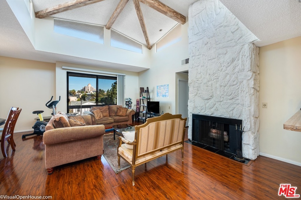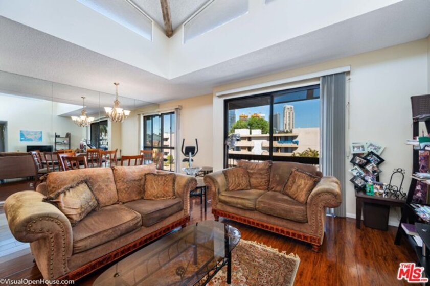 This unit located on top floor, corner unit is flooded with light. There is a spacious open living room, dinning area, high ceiling with beamed sky light, fireplace as well as a large wet bar. Large master suite with walking closet. Second bedroom is a generous size. with extra storage. HOA includes earthquake insurance, pool and jacuzzi maintenance. Great location, close to Century City shops, restaurants and theaters.Broker/Agent does not guarantee accuracy of square footage, lot size, zoning, rent control, permits, use code, schools and/or other information concerning the conditions or features of the property provided by the seller or obtained from public records or other sources. Buyer is advised to independently verify the accuracy of all information through personal inspection and with appropriate professionals.