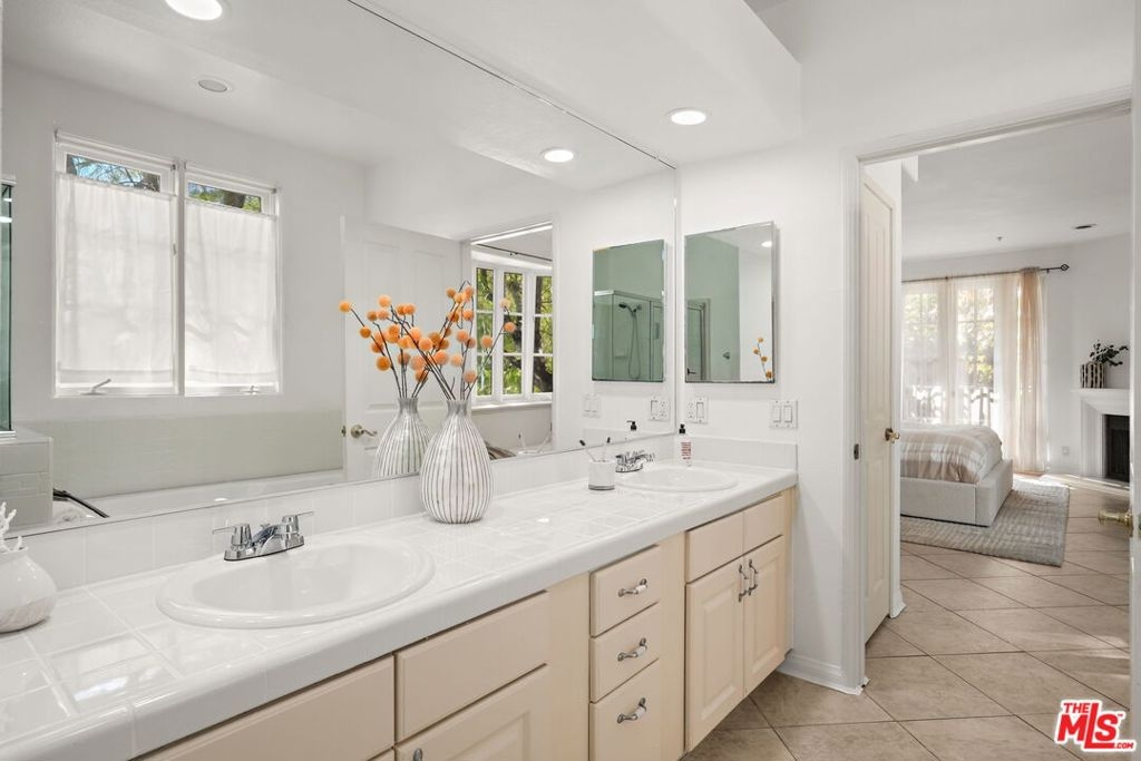 Elegant and spacious Westwood condo in a fantastic location. This bright single-level 2 br 2 bath unit welcomes you with high ceilings and French doors leading out to 2 romantic balconies. Detached on 3 sides, the unit features 2 fireplaces, recessed lighting, ceramic tile floors and a great floor plan. The oversized primary suite includes a huge walk-in closet and an indulgent ensuite bathroom with a deep soaking tub, separate shower and double vanity. Clean and functional kitchen has lots of storage and an easy flow for cooking and entertaining. Separate dining area has plenty of space for guests, a built in wet bar and an easy flow to the living room. Alcove off living room provides a perfect place for a separate workspace or a reading nook. Second bedroom and full bathroom are located at the opposite end of the unit, which allows for privacy and quiet for all. Also included are stacked washer/dryer, 2 assigned tandem parking spaces, plus guest parking. Just a stone's throw from wonderful eateries on Westwood BLVD and in Westwood Village, plus UCLA, The Hammer Museum, recreation at Westwood Park, and the soon to be completed Westwood Metro Station. This is a great place to call home!