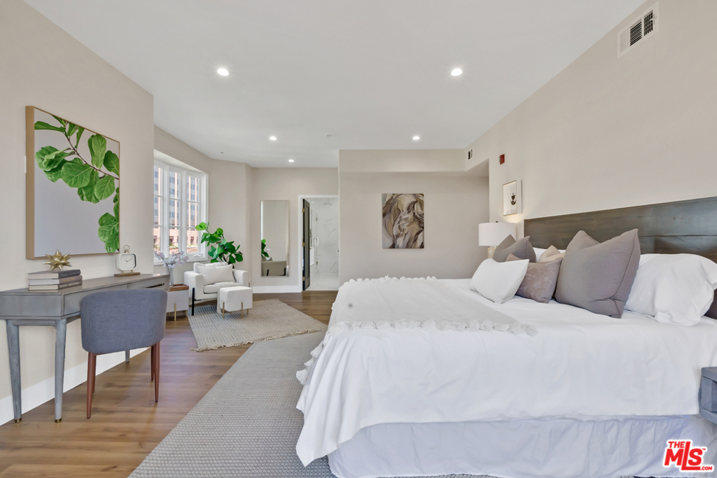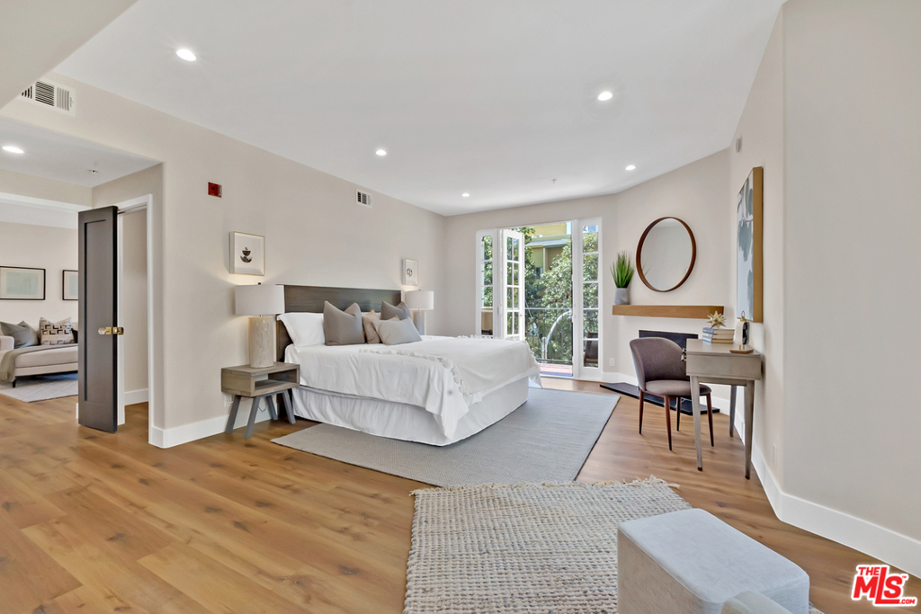 Spectacular and completely remodeled single-leveled condo. Featuring pristine & modern finishes. 2 bd + 2 bath + bonus office or exercise room. Open floor plan. High ceilings. Gas fireplaces. Floor-to-ceiling french doors that open to private balconies making this the perfect place to live and entertain in style. Everything completely remodeled w/ new countertops, cabinetry, Italian tiles, flooring, and much more. Smart home ready. Spacious master bedroom with huge walk-in closet, updated en-suite bathroom, double sink vanity and custom glass enclosed shower. Second bedroom w/ remodeled bath. Bonus office space or gym perfect for working from home or exercising. 3 tandem parking in gated garage. Electric car charger ready. Condo building has only 4 floors-- 2 condos per floor; only 8 owners total. Only one shared wall with neighbor. Bright and airy feel with windows on 3-sides of the condo. HOA amenities include water, trash, pristine common areas, a pet-friendly policy, and earthquake insurance. Condo building remodeled in 2019, including full elevator upgrade. Low HOA dues, guest parking, Controlled Access Building. Fabulous location in Westwood is a short walk to trendy shops, restaurants, UCLA and Equinox gym right across the street. Must See & Move-in Ready.