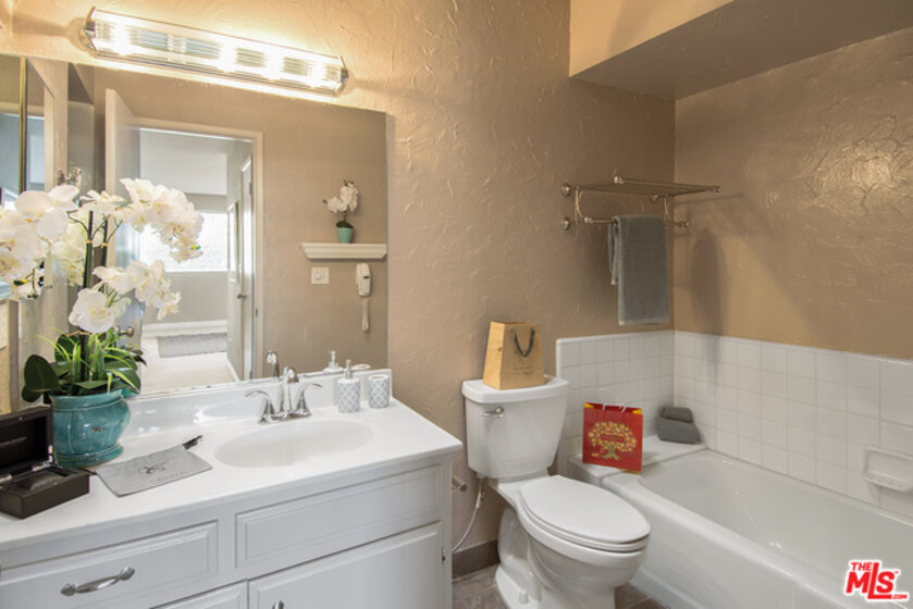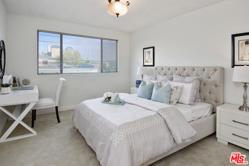 Prime Top Floor Corner Unit in move in condition. This beautiful 2 bedroom 2 bath features, living room with vaulted ceilings, bamboo flooring, fireplace, balcony with views, dining room area, eat in kitchen with newer appliances, side by side laundry, master bedroom with walk in closet, vanity, and updated bathrooms and second bedroom. The building features, a large pool with , secure parking with side by side parking and a large extra storage. All conveniently situated near Rancho Park Golf Course & Cheviot Hills Recreation Center, Westfield Century City Mall, Beverly Hills, Westwood and UCLA.