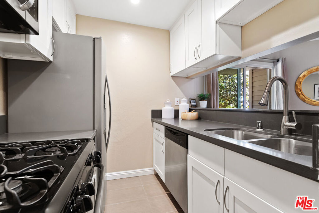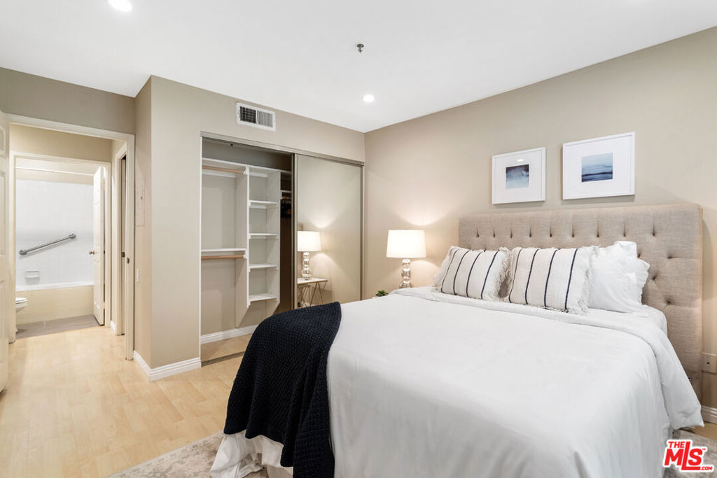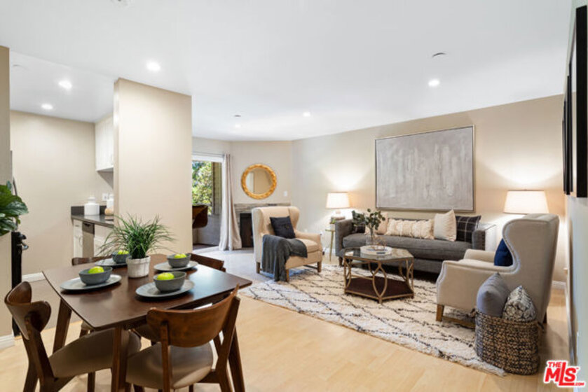 Welcome to your new city home just steps from Westwood Village and UCLA. This front facing quiet corner unit only shares one wall. Upon entry, you are greeted with an oversized walk-in closet and additional gated storage is provided in the garage below. The dining room, living room, and modern kitchen all open up together towards the sun filled balcony. The modern kitchen boasts white shaker cabinets with quartz countertops along with all stainless-steel appliances. The spacious balcony opens up to a peaceful tree lined street with enjoyable views. On the other side of the home lie the bathroom and bedroom. The master bedroom is generously sized and outfitted with custom triple pane windows and blackout shutters to create a soundless and dark sleeping experience. The master bathroom is outfitted with a Jacuzzi tub shower combo and modern vanity. The home has an open floor plan, laminate wood flooring, central AC, decorative fireplace and (2) tandem parking spots. The controlled access building boasts community laundry on each floor, ample guest parking, low HOA dues, Bruin Bus Stop right out front and short walk to your favorite restaurants. Come make this beautiful home all yours! *[Virtual Tour Available]*