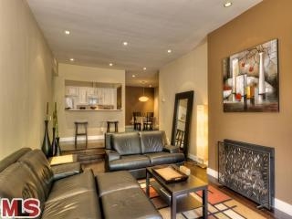 Gorgeously remolded single level condo in a modern Zen like setting, away from city stress and noise. Beautiful open kitchen with a breakfast bar and Caesar stone counter tops, stepped down living room with fireplace that opens to a large private balcony. Open dining room with extra storage space. Spacious master bedroom suite with remodeled bathroom and walk in closet, plus access to balcony. Second bedroom is located conveniently adjacent to the remodeled hallway bath. High ceiling and hardwood type floors add to the clean and spacious feel. Inside laundry can accommodate side by side machines. Central A/C and heating. 2 car side by side parking inside controlled access garage. HOA features pool, spa, controlled access and carries earthquake insurance. Fantastic century city adjacent location close to Beverly Hills, Century City, Westwood, UCLA, Rancho Park Golf and park/recreation.