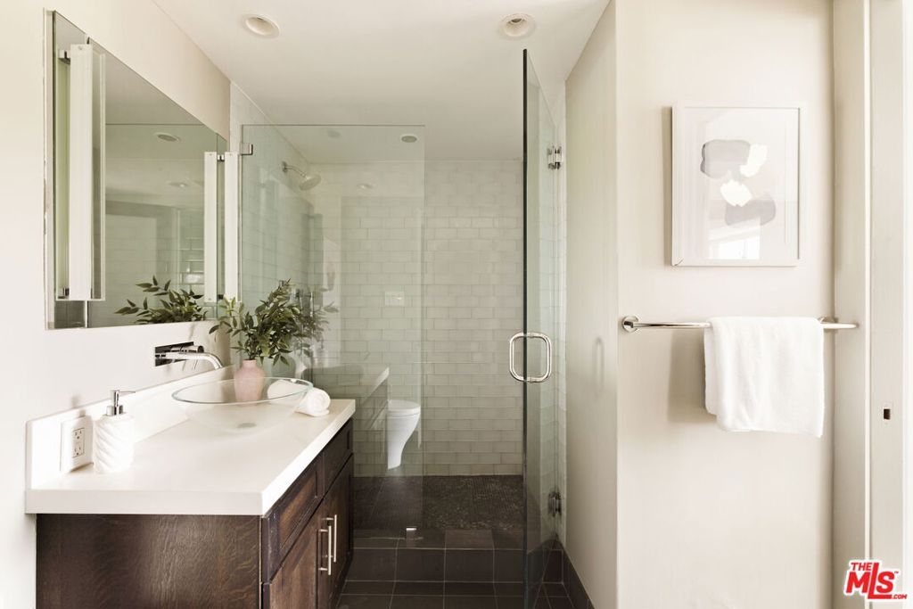 A spectacular corner condominium in Park Westwood Towers. This designer-updated 2 bedroom, 1.5 bath condo is truly one of the best units to come to market in the building in years. With sweeping views from the Getty to the surrounding hills, the residence offers a rare combination of privacy, natural light, and a clean, well-executed interior. The kitchen is built for both form and function, featuring custom cabinetry, marble countertops, abundant storage, and premium Thermador and Sub-Zero appliances. It opens seamlessly to the open-concept living and dining areas, where a custom built-in banquette adds both style and practical storage. The generous primary includes custom closets, and a remodeled bath finished with floor-to-ceiling tile and a large walk-in shower. Pocket doors connect the second bedroom to the main living space, creating flexibility for a guest room, office, or expanded living area. A separate powder room, rarely found in the building, adds convenience for guests. Real hardwood floors, newer central heating and air, high ceilings, recessed lighting, and custom cabinetry complete the interior. Park Westwood Towers, designed by acclaimed architect Victor Gruen, is located in the heart of Westwood Village, just one block from UCLA. Residents enjoy a 24-hour doorperson, valet guest parking, on-site management, a pool and spa, and a beautiful lobby. HOA dues of $1,480/mth cover almost everything -- water, sewer, trash, cable, internet, free community laundry, and one gated parking space. With UCLA, Trader Joe's, the W Hotel, and a wide range of restaurants and shops just outside, the location brings everyday convenience within reach, while the home itself offers a quiet, elevated retreat above it all.