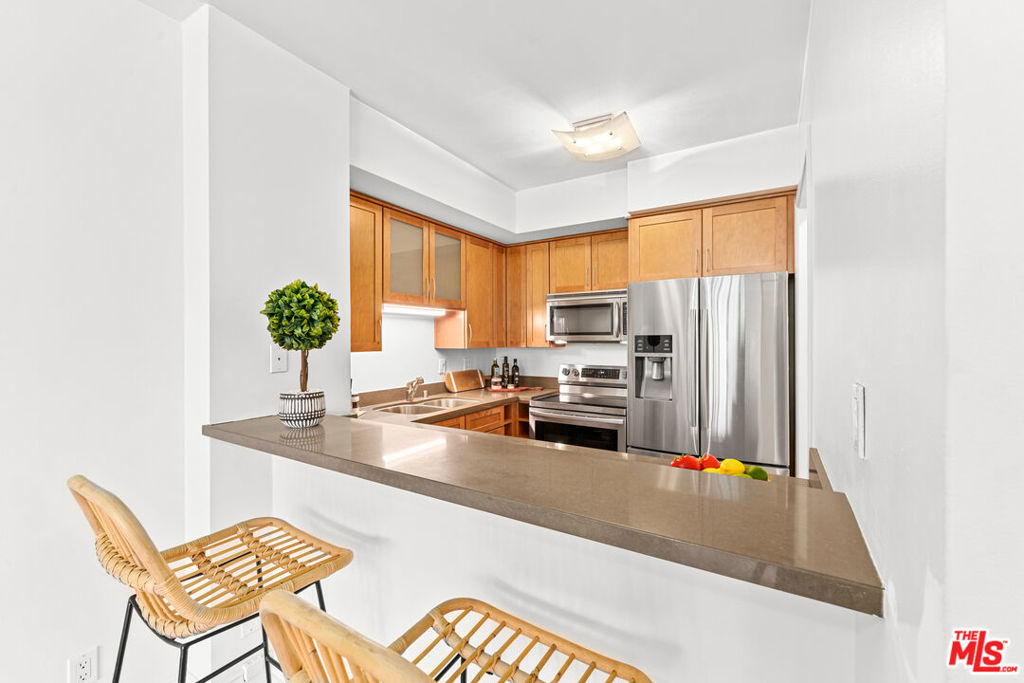 1 bedroom, 1 bathroom condominium located in Park Westwood Towers, the premier luxury high-rise building in the heart of Westwood Village (only 1 block to UCLA). This rear facing condo features: open kitchen with stone counters, stainless appliances, and breakfast bar, large open-concept living room/dining area, bedroom suite with bathroom and huge, fully fitted walk-in closet, bamboo floors, new paint, updated windows with plantation shutters, high ceilings, central heat/air and incredible natural light. This sought-after NY-style building offers valet guest parking, 24-hour doorman, beautiful lobby and public rooms, onsite manager, stunning heated pool/spa, and low HOA dues ($667/month) which include: building amenities, water/sewer/trash, cable, internet, free community laundry, earthquake insurance and 1 gated parking space. Located close to restaurants, shopping, movies, 'W' Hotel and Trader Joe's.