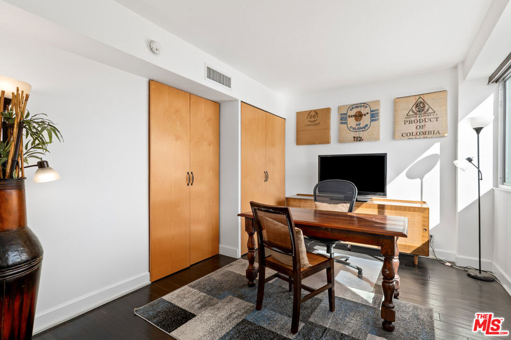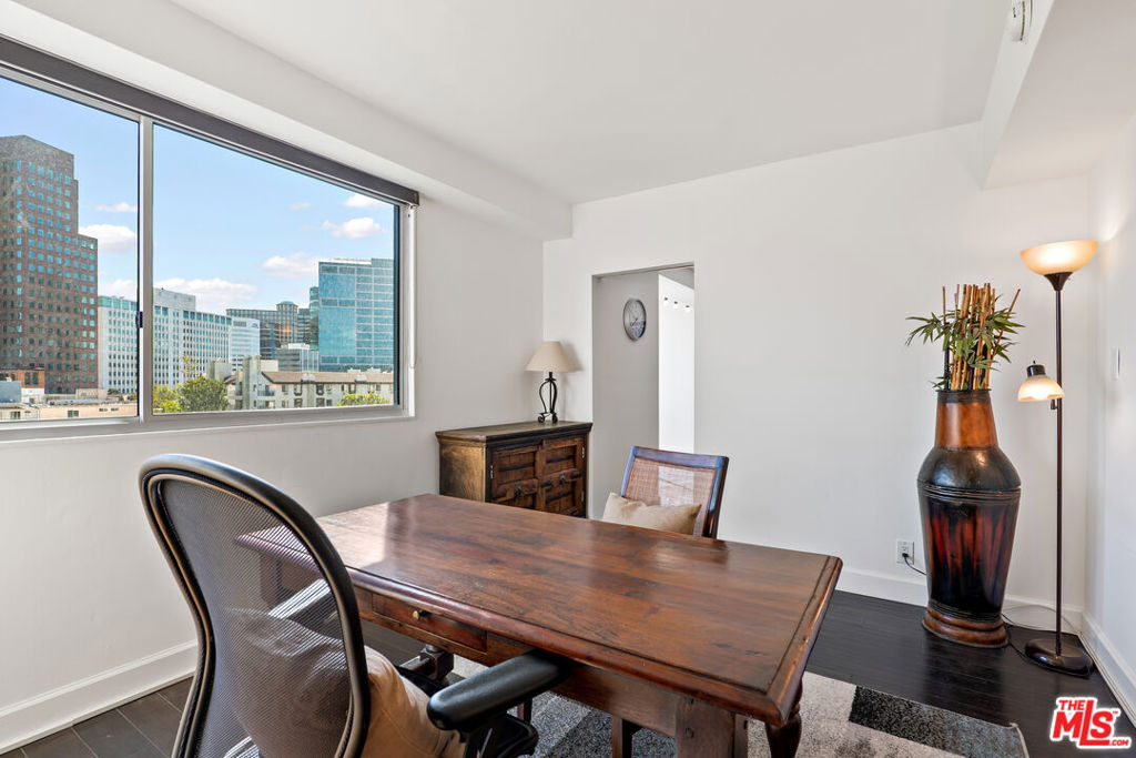 Welcome to the premier luxury high-rise building in Westwood Village - Park Westwood Towers. Located just one block from UCLA, this corner condominium features: 2 bedrooms, including one bedroom that can also serve as a den/office with access to the living room, 1 bathroom with adjacent dressing area, a spacious kitchen with stainless steel appliances and stone counters, which seamlessly flows to a large open concept living room and dining area. Additional features include a large walk-in closet that can be converted to in-unit laundry or a second bathroom (with HOA and City approval), hardwood floors, central heat/air, tons of natural light and City views from every window. Park Westwood Towers, designed by renowned architect Victor Gruen, is a desirable New York-style building that offers valet guest parking, 24-hour doorperson, a beautiful lobby and public rooms, onsite manager, and a heated pool and spa. The HOA dues of $1,215 per month include building amenities, water, sewer, trash, cable, internet, free community laundry, and 1 gated and covered parking space. Located within close proximity to restaurants, shopping, movies, 'W' Hotel and Trader Joe's. Whether you're a student, professional, or simply looking to enjoy a vibrant city lifestyle, this condo is a comfortable & convenient place to call home.