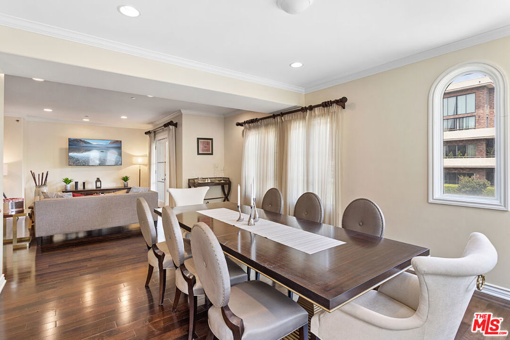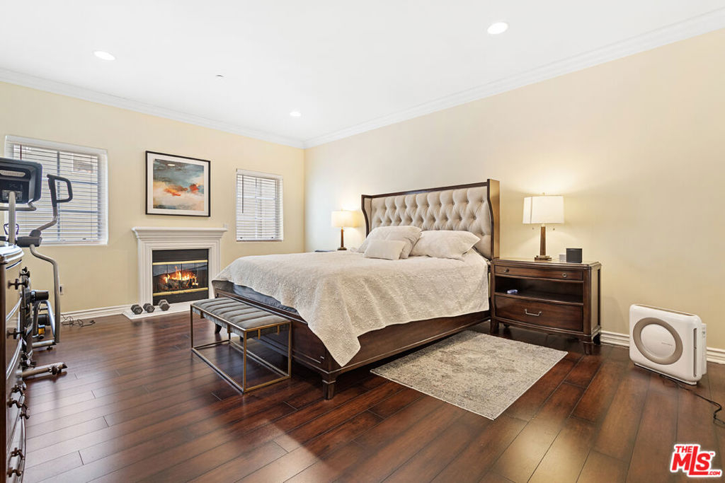 Beautiful and large Front unit with 3 bedrooms, 3 bathrooms just one sharing wall. Open floorplan large & Bright living room with Balcony patio, Fireplace in the dining room and nice Dining area, Gourmet Kitchen with granite countertops, stainless steel appliances & a second sink bring this entertaining area together. Solid hardwood floors, recessed lighting, and a built-in Harmon surround sound system. Large Master suite with fireplace, Nice walk-in closet, and luxurious master bathroom with dual sinks, soaking tub, and shower. Two additional bedrooms, a large full bath, and an entry powder room. Washer & Dryer in the closet space. Central Air & Heating. Two storages in the unit. Extra storage in the parking, Two secured covered parking spaces in the Garage, guest parking & a private gym. The HOA includes a Security Camera system, guest parking, trash, and water. This unit is in the heart of Westwood, minutes from UCLA, restaurants, shops, and supermarkets.