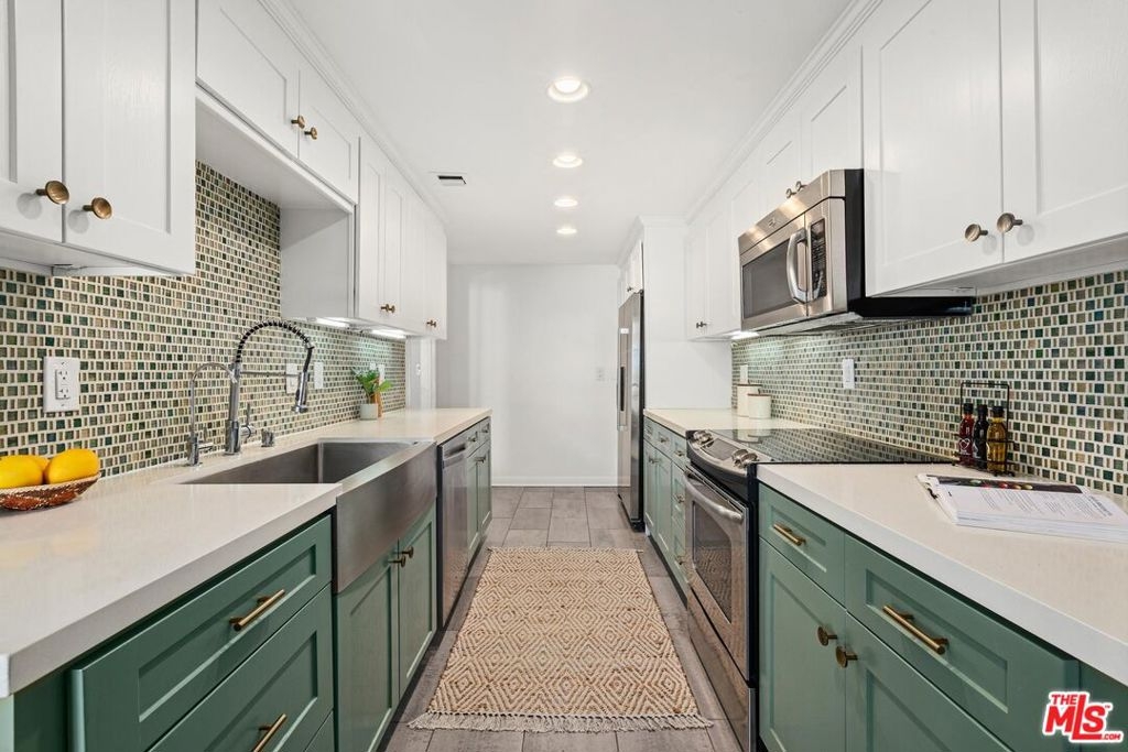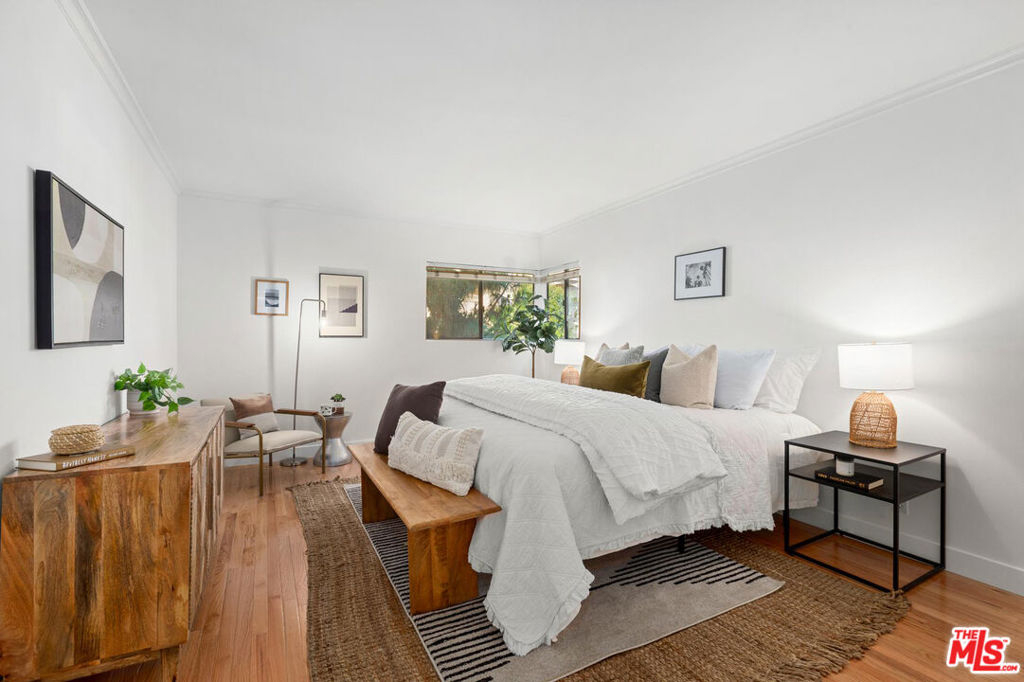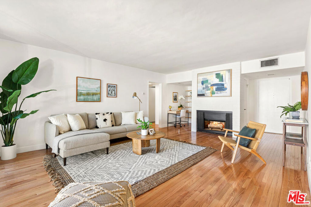 Stunning and stylish beautifully remodeled 2+2 unit in the heart of Westwood. This spacious and luminous front, corner unit has new hardwood floors throughout, an excellent floor plan and generous storage. The huge living room features a separate office space and storage nook as well as a decorative fireplace and sunny patio. Savor the gorgeous, remodeled kitchen with quartz counter tops, stainless steel appliances and glass/tile backsplash. The primary bedroom with huge closet space has a full bathroom with tub and separate shower. The second bedroom is spacious with ample closets, the new 2nd bath with large shower is off the hallway. This wonderful home has central a/c and heat, secured 2 car Side-by-Side parking, water included in HOA fees, free community laundry and more storage in the garage. Located in highly rated Fairburn Elementary School district. What an exceptional property so close to UCLA, Bristol Farms, Sprouts, Google, Century City, restaurants, movies, shops and more.