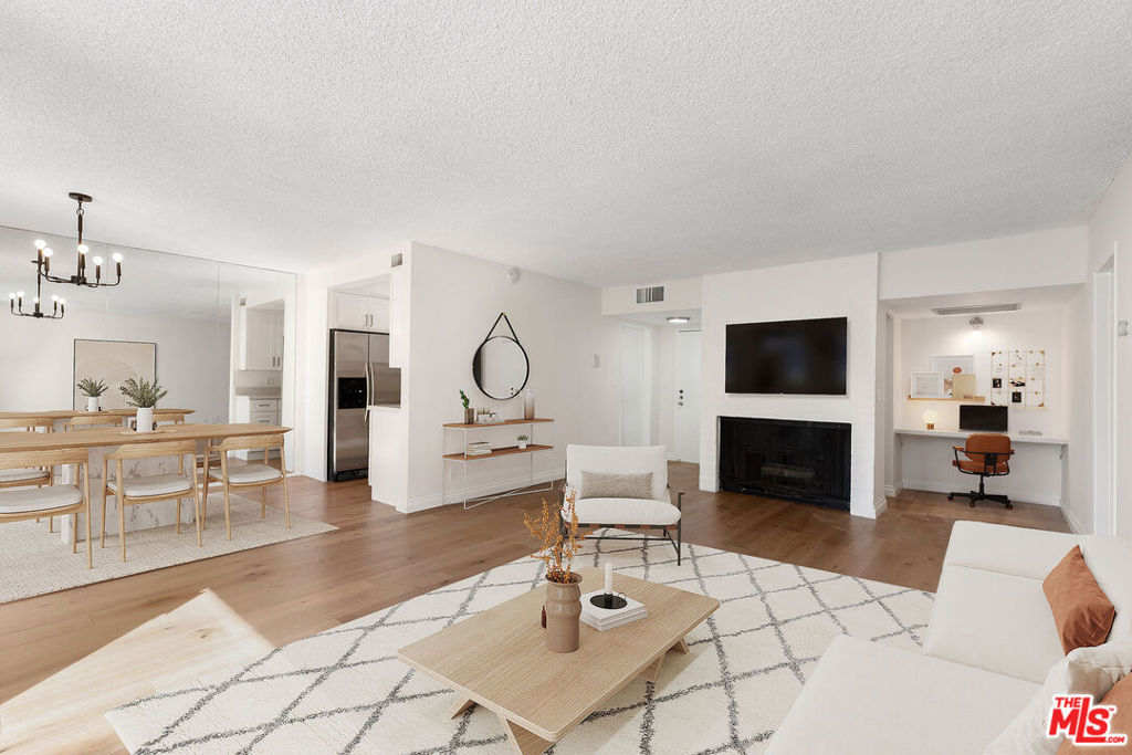 Open and spacious front corner unit in the heart of Westwood! Updated and move-in ready with new oak floors BUT primed for a new owner's final touch. Sunlight floods into the large living and dining rooms from the front private balcony with sliding door allowing for an indoor/outdoor feel, decorative cozy fireplace & bonus work space with large entry closet. Renovated, large galley kitchen with recessed lighting and stainless steel appliances off the separate dining room. Large corner master suite with no shared walls, huge walk-in closet, and generous updated master bathroom with separate shower and tub. Second sizable front bedroom across from the 2nd full bathroom that doubles as a guest or powder room. Ample in-unit storage space. HOA is planning balcony and plumbing upgrades- Assessment already paid by Seller. Only 5 units share free community laundry on each floor. Fireplace is decorative, unknown if working. The unit sits over the secure community garage above the ground floor. Central ac/heat with new Nest thermostat, assigned tandem parking for 2 cars and garage storage space allocated to the unit. HOA fees pay for water, trash and insurance. Epic location- walk to Westwood Blvd shops/coffee/restaurants, UCLA, Hammer Museum, Bristol Farms, Sprouts and CVS. Easy access to Century City, Westwood Village, 405, the new Google Development on Pico, new Metro Line and Fairburn Elem. This property is being sold As-Is. Please view or request the Pre-Sale inspection report. This is a FANTASTIC value-add opportunity for a discerning Buyer.
