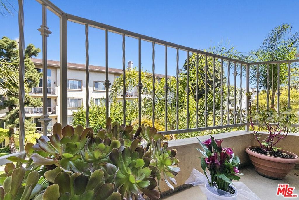 Sophisticated front facing 2 bed/2 bath corner unit filled with natural light & designer touches in immaculate 2006 built Contemporary Mediterranean 16-unit building in prime Westwood location. Entry with closet opens to sun-filled living room w/ crown molding, fireplace & sliding door to step-out balcony overlooking treetop views & greenery. Chef's kitchen w/ granite countertops, stainless steel appliances including gas range/oven, refrigerator, built-in microwave & breakfast bar opening to spacious dining room. Primary bedroom suite w/ no common walls includes walk-in closet, sliding door to large covered corner balcony ideal for morning coffee & relaxing. Primary bathroom w/ marble finishes, dual basins & separate bath & shower. 2nd bedroom w/ large closet currently used as den/office. 2nd full bathroom with marble finishes. Features include Bamboo flooring, archways, central ac/heat, ceiling fans in bedrooms, blinds in all rooms, side x side w/d laundry area w/ storage. Earthquake insurance included in HOA dues, 2-tandem secured parking w/ 2 storage units, guest parking, pets ok. Fabulous location close to fantastic Westwood Blvd. Zagat rated restaurants and markets including Bristol Farms, Sprouts & Whole Foods, UCLA Hospital/Medical Ctr/Campus, Sawtelle restaurants & Metro Expo Line. Fairburn Elementary. Move-in ready!