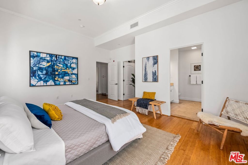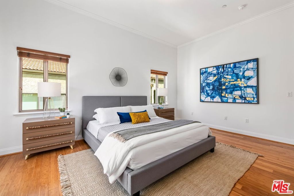 Sophisticated 2 bed/2 bath PENTHOUSE corner-unit in the amazing smaller 16-unit courtyard building, The Blake on Camden in the heart of Westwood. Filled with natural light and high ceilings, the open floor provides a spacious feeling as you enter the condo. Stunning living room with fireplace and sliding doors to balcony, opens to dining area overlooking open chef's kitchen with newly painted cabinetry, granite countertops and stainless-steel appliances including gas range/oven. Spacious primary suite with sliding door to corner balcony, custom-built walk-in closet and luxurious marble finished primary bathroom with separate bath and shower, and 2 sinks. 2nd bedroom with large slider closet. Additional features include bamboo flooring, in-unit laundry area, central ac/heat and newly painted interior. Pets ok, Earthquake Insurance included in HOA dues, 2 secured subterranean tandem parking spaces. Fairburn Elementary School. Ideal proximity to UCLA and Westwood Village Trader Joe's, Whole Foods and Westwood Blvd. Bristol Farm, coffee shops, retail and restaurants and Century City, Beverly Hills and Brentwood. Move-in ready!
