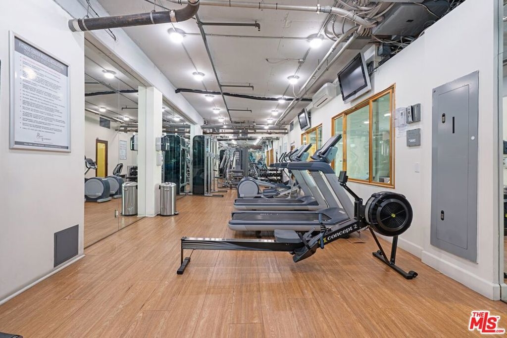 This beautiful resort style building recently underwent a major renovation and feels more like a boutique hotel. It will feel like you're on vacation every day with amenities such as: 24 hour security guard, on-site manager, fitness center with steam room & sauna, conference room, party room w/ kitchen & more. Imagine relaxing in the outdoor space that features; lush landscaping, waterfalls, outdoor lounging areas, pool & spa, koi ponds and turtles. This single level 1 bedroom condo is situated on the quieter side of the building and shares only 1 common wall. An open living room/den features high ceilings, hardwood floors and a glass sliding door leading to a balcony. The kitchen has newer cabinetry, tile counters, stainless steel fridge and a window opening to the dining room. The bathroom has been tastefully updated with a large vessel sink, tile floors and a shower/tub combo. 1 car assigned underground parking. Close to UCLA & Westwood Village. HOA includes; All utilities & EQ Ins.