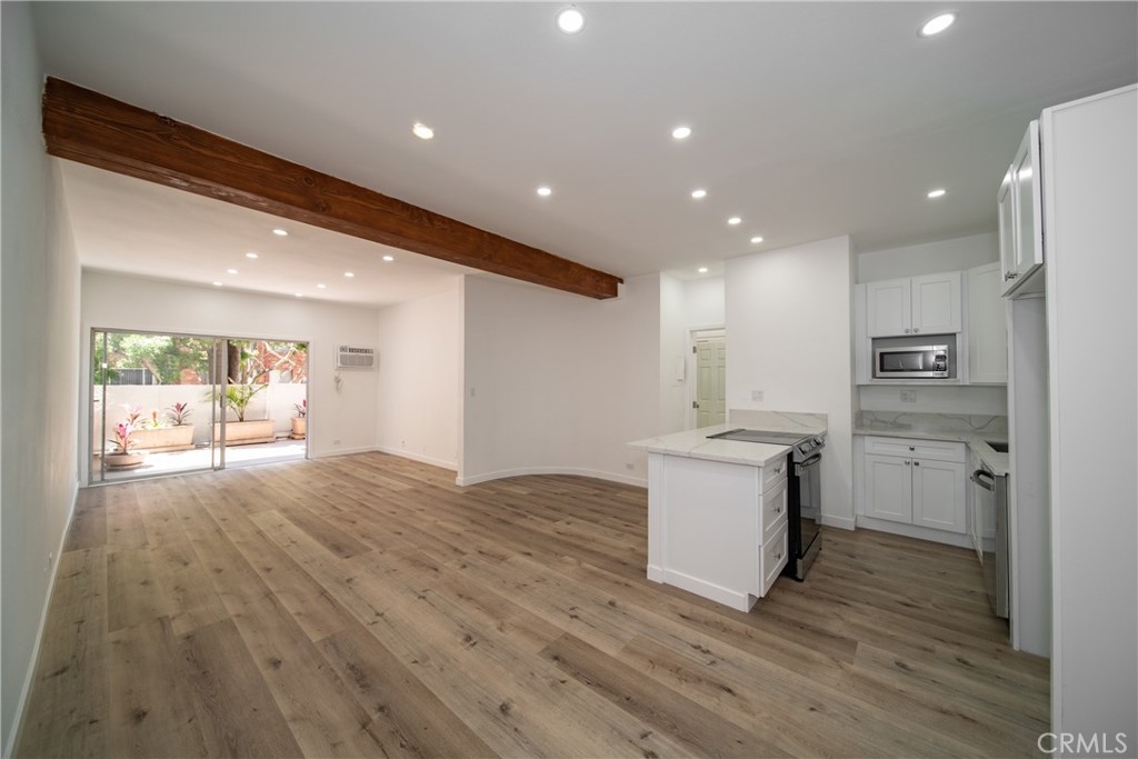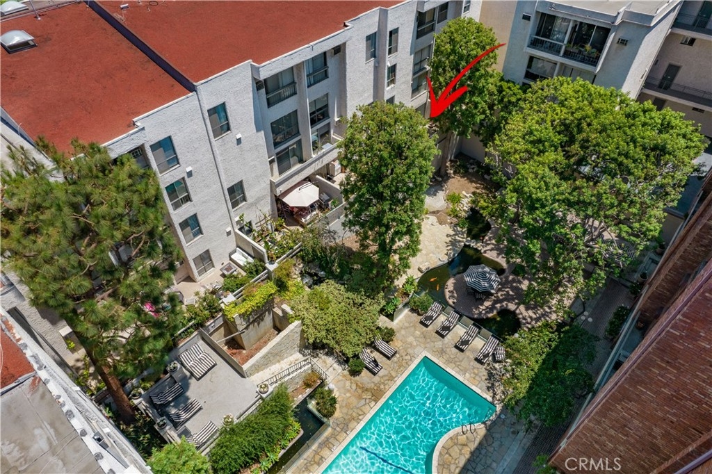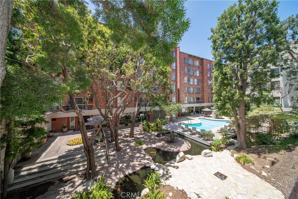 Immaculate!! Don't miss this 100% move-in condition home!!! Original Kitchen was totally remodeled - new cabinets, beautiful quartz counters, new electric stove with oven, new microwave, new dishwasher, new garbage disposal, new sink, new faucets, and space for a (30 x 70 in) Fridge. There is also upgraded Led 3 color change modern Lighting. Home feels very spacious! Kitchen is open to the living room and dining room and has an awesome view of a coy pond, waterfall, pool, and courtyard with all the beautiful greenery behind it. There is counter seating in the dining area. Living room is very open is very cozy. New baseboards, window, and closet trimming through out. The master bedroom is perfect and has PLENTY of closet space and a new LED Fan! The Master Bathroom is remodeled with fantastic tile, new tub, vanity, door, and toilet. This home has a very large balcony with a great view of the pool, pond, and court yard. This balcony backs up to trees, so it feels very private and beautiful. New AC/Heat unit in wall. It has a private security and 1 car parking space in Garage. The entire home was newly primed and painted. This property is in a very desirable, part of the complex. Amenities for "The Colony” include 1 pool / spa areas (with restrooms), a sport gym, club house, plenty of beautiful sidewalks and greenery throughout the complex. A wonderful place to take walks, swim or sit out on your balcony and just enjoy life. This home is located in the very desirable Westwood and is close to parks, shopping, restaurants, night life, schools, and more. Don't miss out on this one!!