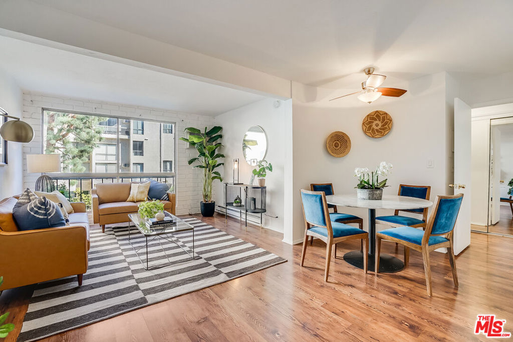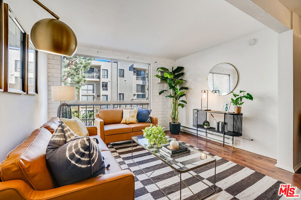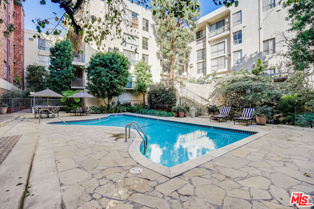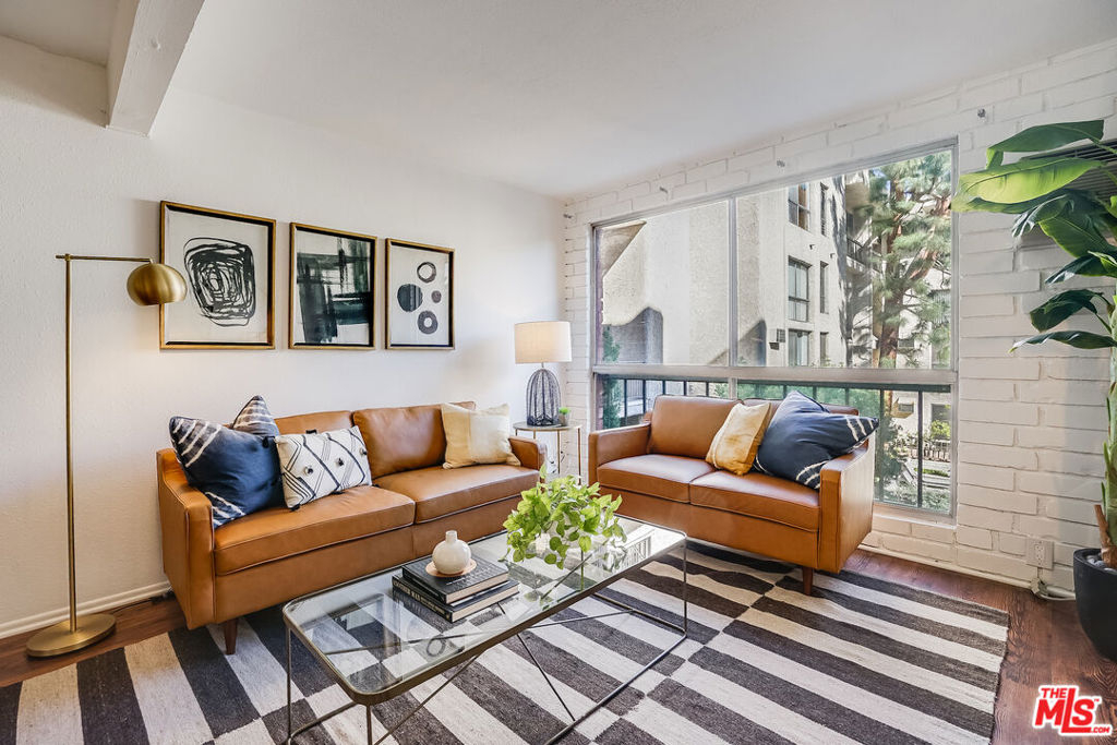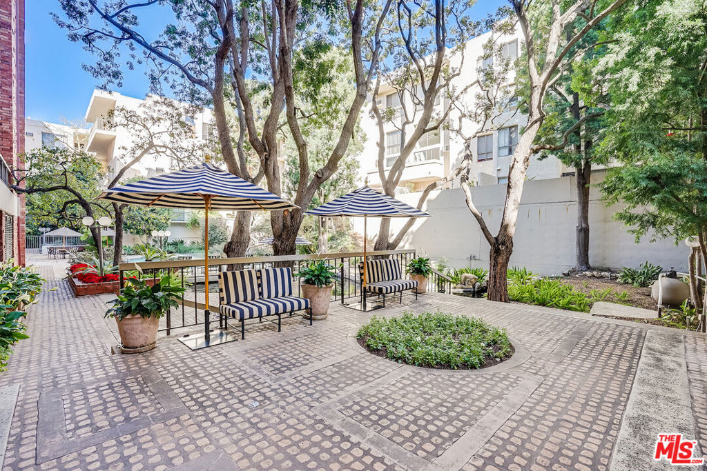 This oversized spacious one BR unit in the prestigious Colony at Westwood has it all. The light-filled open floor plan provides abundant living space with room for home office, and offers beautiful views of the peaceful courtyard and pool. The remodeled kitchen featuring quartz countertops and subway tiled backsplash, opens to living and dining areas. A private and spacious bedroom with brick accent wall features ample closets & storage, and connects to a tastefully done ensuite bath that includes a newer vanity & floor, and new shower door. The building is a dream come true with 24-hr security, onsite manager, courtyard with large pool, spa, waterfalls, and multiple outdoor seating areas. Topping things off are the updated and fully equipped fitness room, steam-room, and sauna, as well as entertainment/conference room off the lobby. All utilities included in the monthly HOA (electric, water, trash). If you're seeking a home near UCLA and Westwood Village at a fantastic price-point, look no further. Westside living at its best! *OFFER DEADLINE: Friday, Feb 3, at 12:00 pm.