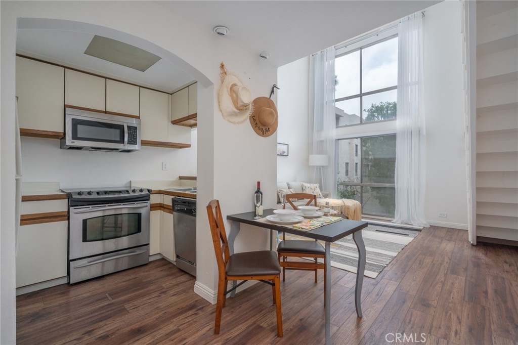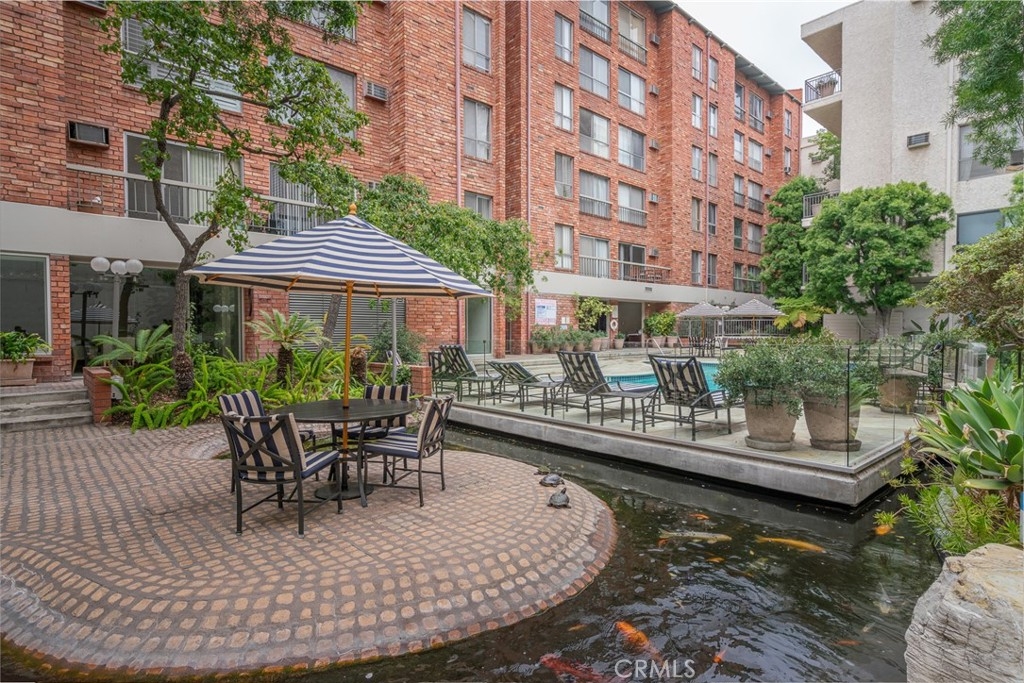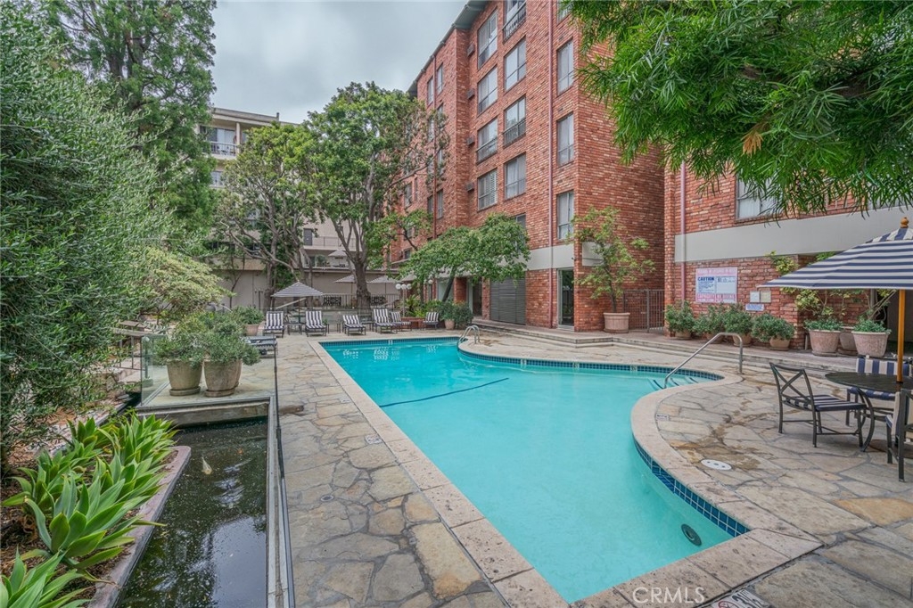 Welcome to the Colony at Westwood, a luxury doorman building in the heart of LA’s Westwood. This open and bright studio loft offers one of the best Westside locations in Los Angeles. Approximately 610 square feet, the two-story condo features a main level with a fully appointed kitchen, a living room with double-height ceiling, and a floating staircase leading to the bedroom loft, with a dining area, large windows, wood-styled plank flooring, and secured parking enhancing the list of included amenities. The kitchen has a great open layout with a handy pass-thru space to the eat in bar counter. Enjoy views of the building’s gorgeous private courtyard, with koi pond and luxurious pool below. The Colony also has endless luxury accommodations, including a gym, spa, sauna, meeting room, beautiful lobby, community laundry on every floor and assigned secure parking. This unit is situated in an ideal proximity to the best the West Side has to offer including Westwood Park’s tennis courts, picnic areas and dog park, theaters in Westwood, shops in Beverly Hills and the UCLA campus. Perfect for UCLA students & staff, this condo is only one block to the nearest UCLA shuttle stop! If you want to be near great restaurants, gyms, and the beach (just a few miles away), in a secure doorman building, this is the home for you.