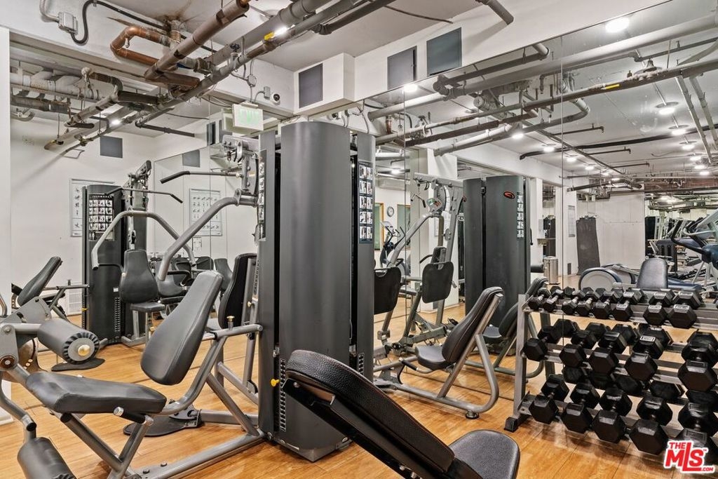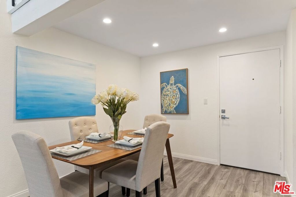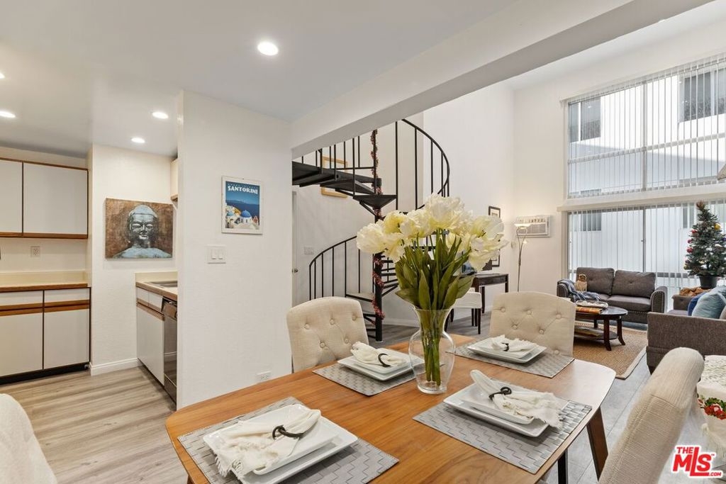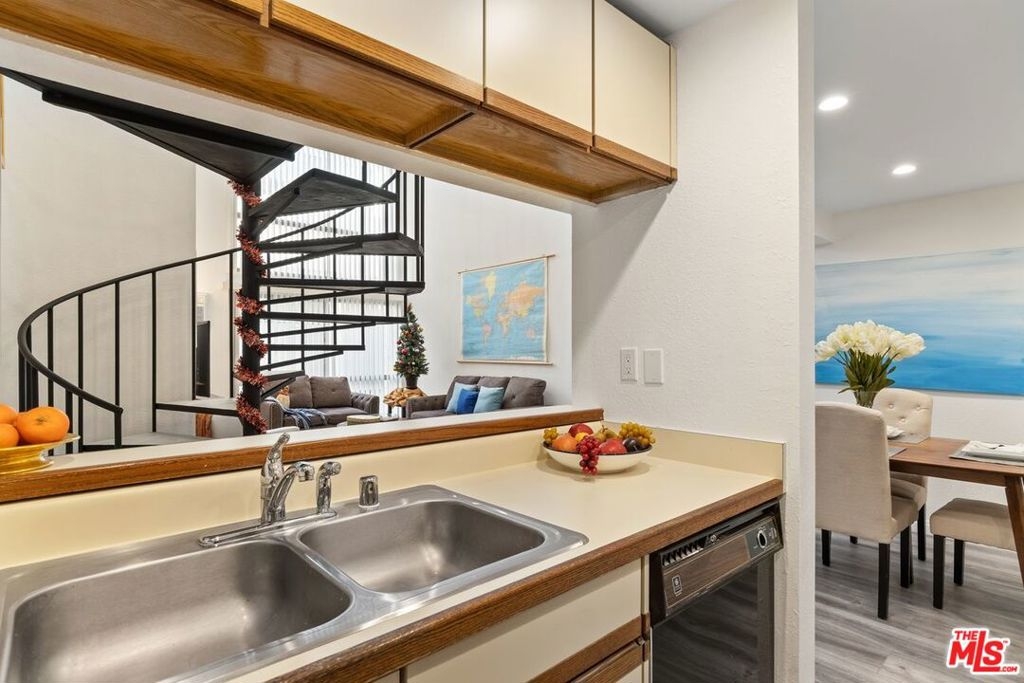If you want to live in hip boutique hotel environment...look no further. This beautiful resort-style building is centrally located in the heart of Westwood. The complex features a 24-hour security guard, package delivery check-in & digital notification system, on-site manager, professional fitness center with a gym, steam room and sauna, a party room with a catering kitchen, separate lounge/conference room, bicycle storage rooms and more. Imagine relaxing in the outdoor space that features; lush landscaping, waterfalls, outdoor lounging areas, heated pool and spa, koi ponds and friendly turtles. This loft-style condo has soaring ceilings and two story windows. The prominently featured spiral staircase leads to the second bedroom, the open loft, overlooking the living room. Loft works great for a home office/guest bedroom space as well. Potential to add more bonus storage space in the loft. First floor en-suite bedroom and bathroom are tucked off to the side downstairs, allowing for a nice separation of space. Homeowner just finished remodeling various items throughout the condo; smoothing all the ceilings and adding dimmable recessed lighting, new paint throughout, new luxury wood-like vinyl planks throughout, new heater & air conditioning unit, re-glazing the shower & tub, new window treatments, resurfacing the concrete steps of the spiral staircase and more. If you appreciate a little vintage look, you're in luck, while older, the kitchen appliances look almost brand new, rarely used. Condo comes with one assigned parking spot in the gated and secured garage. A large park with tennis, basketball courts and dog park are conveniently located across the street. All this and you are just moments away from UCLA, Westwood Village and the upcoming purple line subway station. Two EV car charging stations are available onsite. HOA includes; electricity, water, trash, earthquake & H06 (walls-in) insurance.