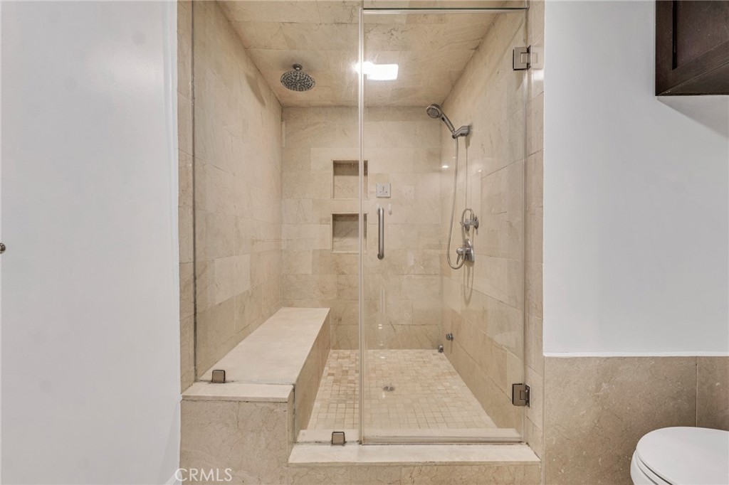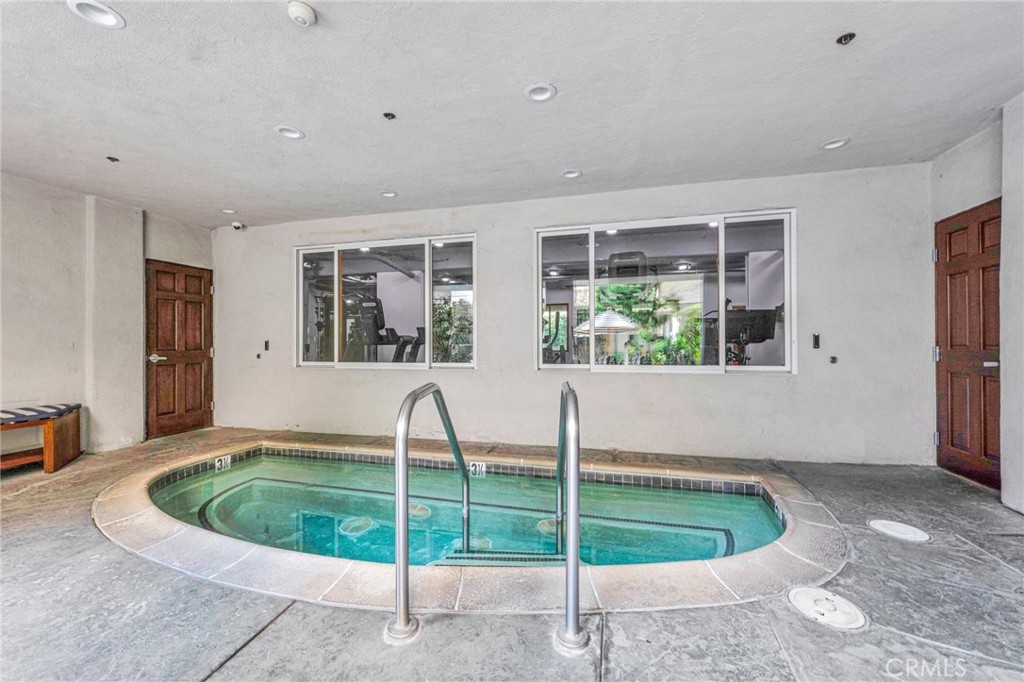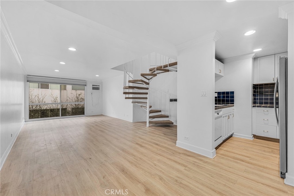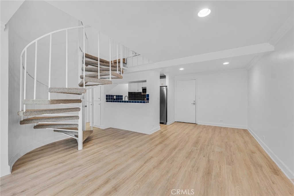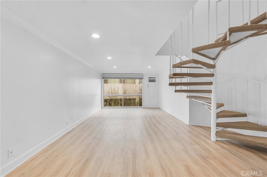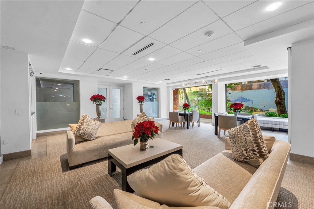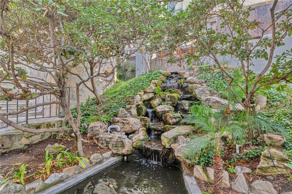 Discover this rare and exceptional 2-story featuring 2 en-suite bedrooms in a resort-style Westwood building offering an extraordinary blend of comfort and sophistication. Unique to this unit, the upper-level bedroom is fully enclosed, offering an expanded layout featuring a spacious walk-in closet with secondary closet space, and a lavish en-suite bathroom. A main level boasts another well-appointed bedroom with dual closets and its own en-suite bathroom. The kitchen has a breakfast bar and is adjacent to the dining area. A seamless flow opens to a bright and airy living room highlighted by a large floor to ceiling picture window, while a spiral staircase adds a sophisticated touch. This condo is one of the few in the building with in-unit laundry, equipped with a stackable washer and dryer. The building itself offers 24-hour security and luxurious amenities, including a full gym with Peloton and Precor equipment, steam room, sauna, conference room, recreation room with a kitchen, spa, and an inviting inground pool surrounded by lush tropical landscaping, a meandering koi pond with turtles, and a cascading rock waterfall. Dues cover electricity, trash, water, earthquake insurance, and one garage parking space. Situated across from Westwood Park with sports courts, walking paths, and a dog park, this prime location is minutes from UCLA, Westwood Village, and the 405 freeway, combining a refined lifestyle and convenience in the heart of the city.
