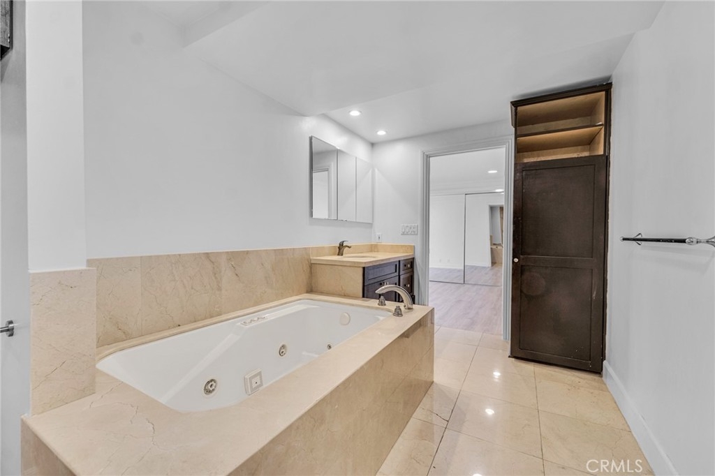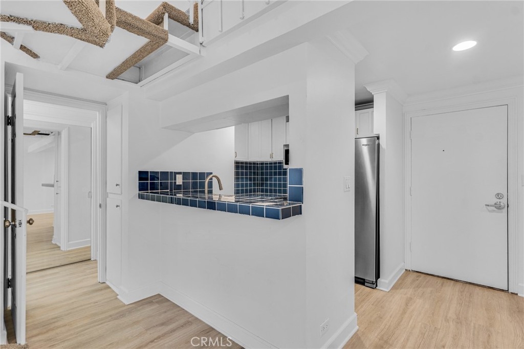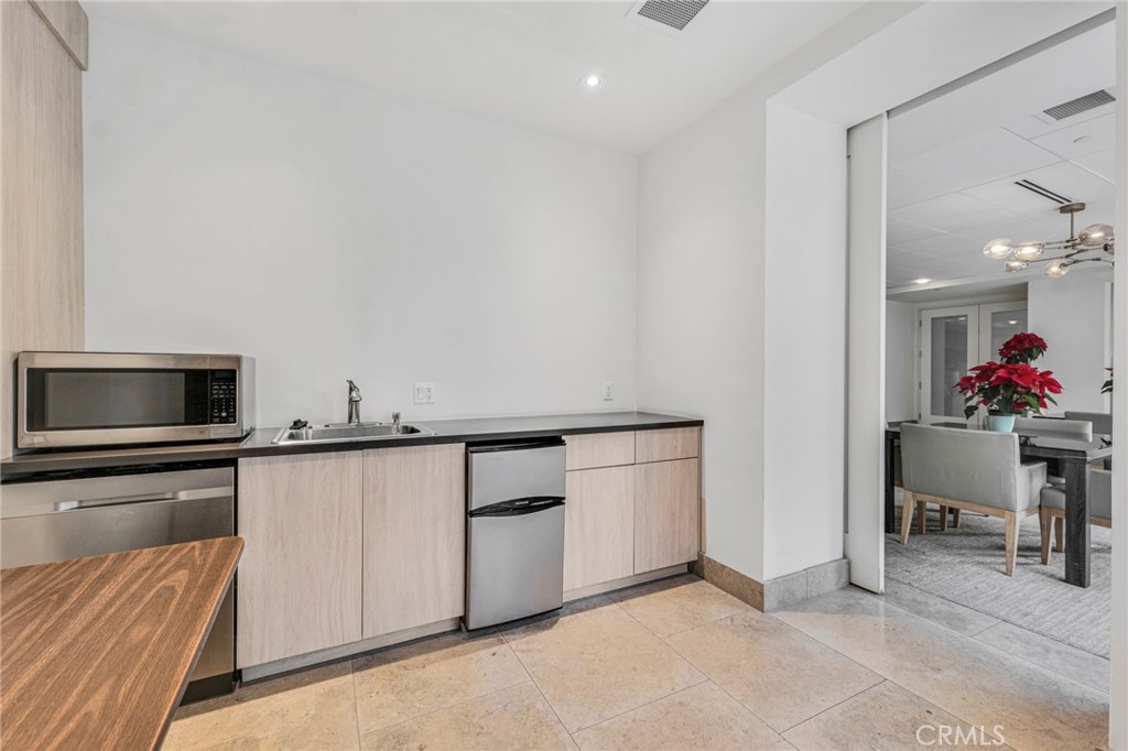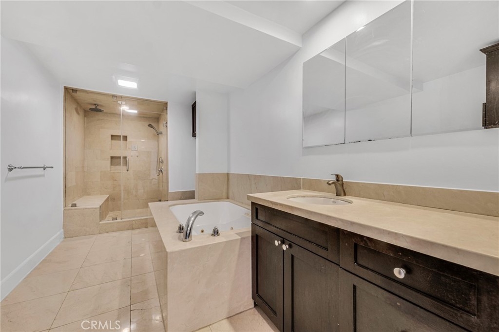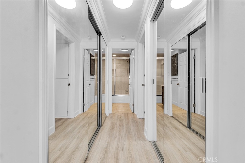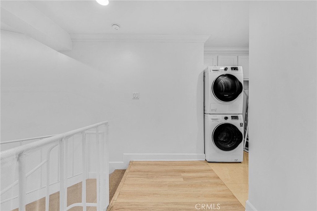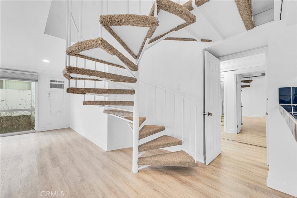 Discover this rare and exceptional 2-story featuring 2 en-suite bedrooms in a resort-style Westwood building offering an extraordinary blend of comfort and sophistication. Unique to this unit, the upper-level bedroom is fully enclosed, offering an expanded layout featuring a spacious walk-in closet with secondary closet space, and a lavish en-suite bathroom. A main level boasts another well-appointed bedroom with dual closets and its own en-suite bathroom. The kitchen has a breakfast bar and is adjacent to the dining area. A seamless flow opens to a bright and airy living room highlighted by a large floor to ceiling picture window, while a spiral staircase adds a sophisticated touch. This condo is one of the few in the building with in-unit laundry, equipped with a stackable washer and dryer. The building itself offers 24-hour security and luxurious amenities, including a full gym with Peloton and Precor equipment, steam room, sauna, conference room, recreation room with a kitchen, spa, and an inviting inground pool surrounded by lush tropical landscaping, a meandering koi pond with turtles, and a cascading rock waterfall. Dues cover electricity, trash, water, earthquake insurance, and one garage parking space. Situated across from Westwood Park with sports courts, walking paths, and a dog park, this prime location is minutes from UCLA, Westwood Village, and the 405 freeway, combining a refined lifestyle and convenience in the heart of the city.