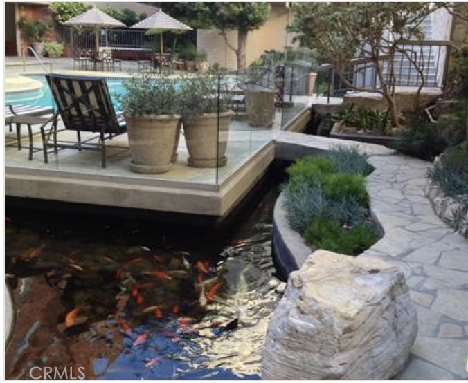 MOTIVATED SELLER! Great deal on an oasis in the heart of Westwood. Two bathroom loft style condo owned and designed by architects. Features a two story floor to ceiling wall of windows that floods the room with light. This unit faces the park like grounds, the koi pond, and the pool. The upstairs loft bedroom contains a full bathroom with an oversized tub, laundry room, walk-in closet with a makeup area, and a large office nook. Downstairs offers another full bathroom, an updated kitchen with stainless steel appliances, dining area, and living room. Enjoy the resort style grounds with lush landscaping, beautiful pool, spa, large koi pond, and sun filled sitting areas. The building also offers 24 hour security guard, concierge service, conference rooms, a gym, sauna, and steam room. HOA includes: Electricity, water, trash, and earthquake insurance. Short walk to UCLA, Westwood Village, eateries, Starbucks. Across the street from Westwood park which has a tennis courts, basketball courts, and a fenced dog area.