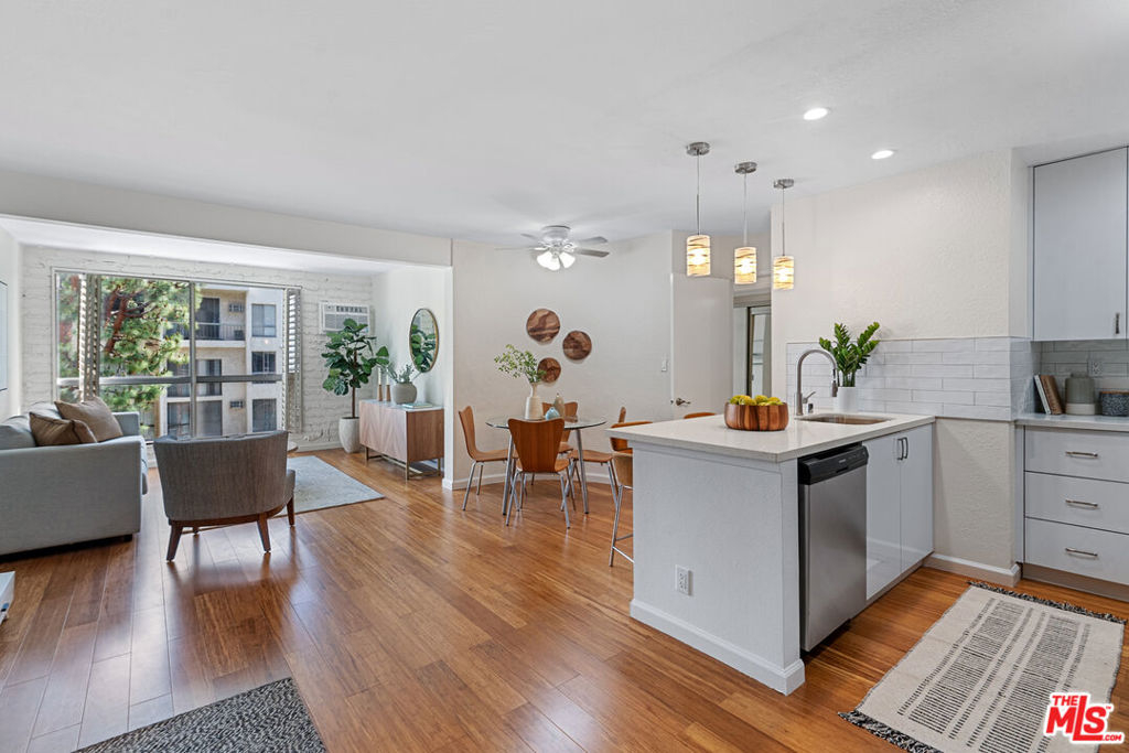 Beautiful, turnkey, and newly remodeled 1 bed 1 bath in highly sought after resort style building with luxury amenities including a 24-hour security guard, on-site manager, a fitness center with steam room & sauna, a conference room & a party room with a kitchen. The grounds feature lush landscaping, waterfalls, koi ponds, turtles, pool, and spa. The condo has been completely remodeled with quartz countertops throughout the kitchen and bath, new cabinets and new bamboo flooring throughout. HOA Includes all utilities and earthquake insurance. A large park with a dog park, playgrounds, tennis and basketball courts is conveniently located across the street from complex. Close proximity to shops, grocery, restaurants, UCLA, Westwood Village & the upcoming purple line subway station. EV car charging is also available onsite.