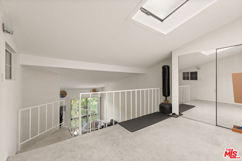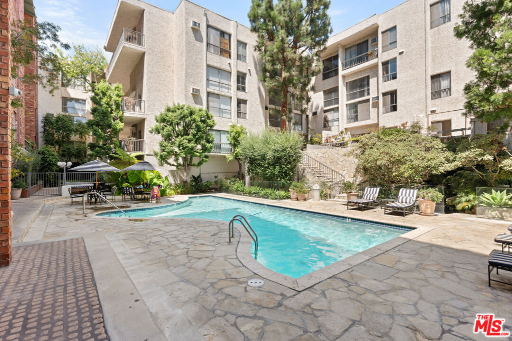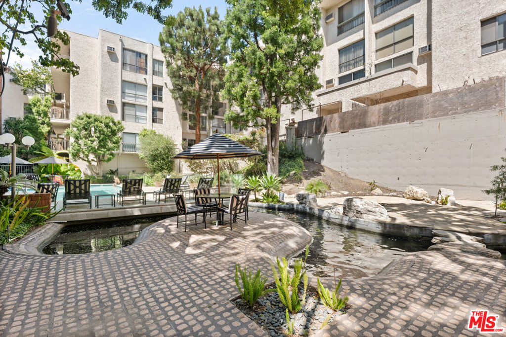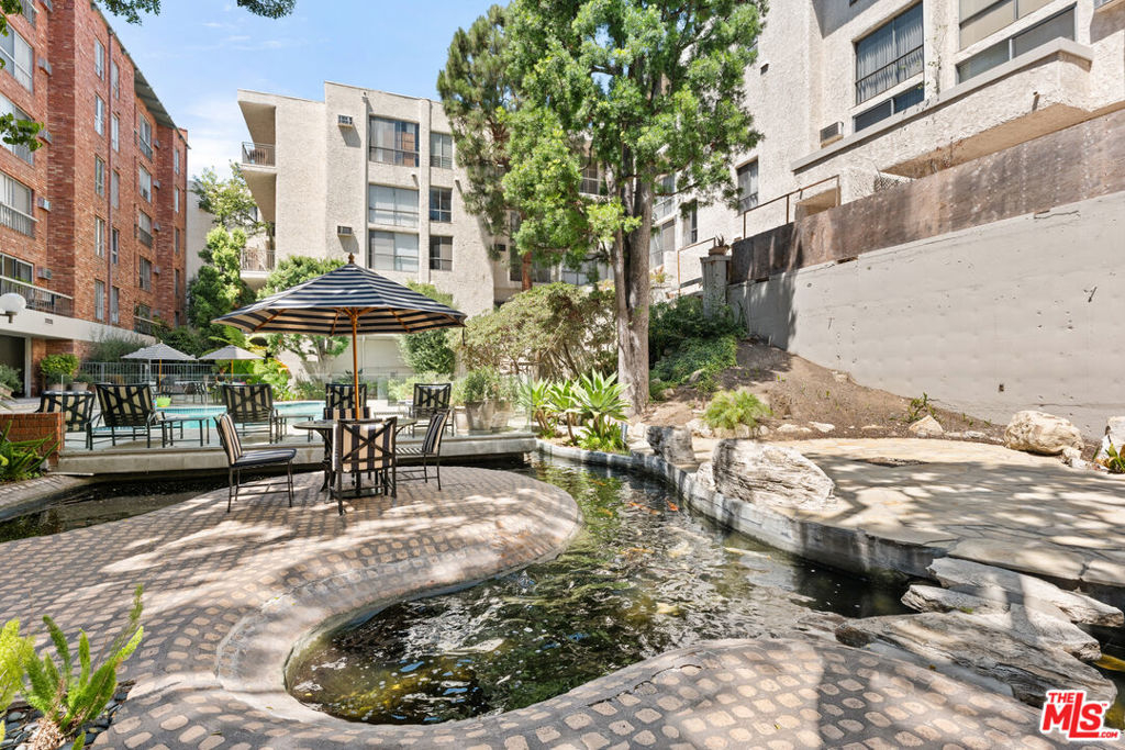 This newly renovated building combines the comfort of modern living with resort-style amenities. With 24-hour security, an on-site manager, a gym complete with a steam room and sauna, a conference room, and a party room with a kitchen, the property provides everything you need for an easy, active lifestyle. The landscaped outdoor areas offer peaceful waterfalls, lounging spaces, a pool and spa, koi ponds, and even a few resident turtles. Inside the two-story, penthouse loft-style condo, you'll find high ceilings in the living room and serene views of treetops, koi ponds, the pool, and the courtyard. The kitchen features stainless steel appliances, and the open loft-style second bedroom overlooks the living room. It includes a skylight, closet, and an extra-large bonus/storage room not included in the square footage. Hardwood floors span the main living spaces, while the loft and bedroom have carpet. Just across the street, a large park offers playgrounds, tennis courts, and basketball courts, making outdoor recreation easy. The location is also near UCLA and Westwood Village. HOA fees cover electricity, water, trash, and earthquake insurance for added convenience.
