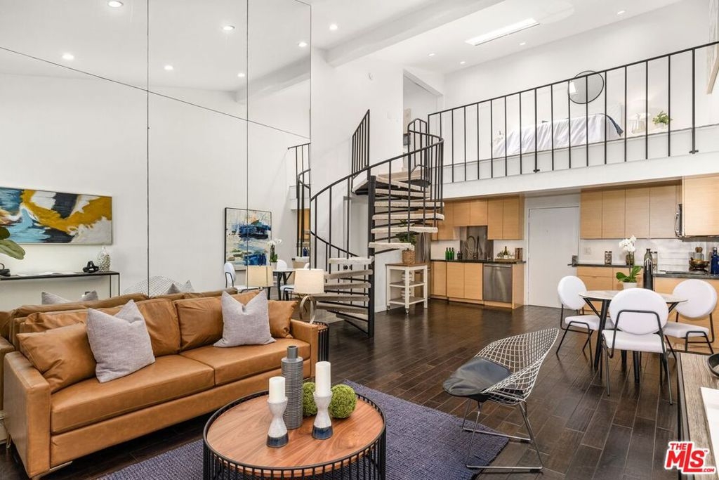 Experience upscale boutique living in the heart of Westwood at this stunning resort-style complex. Indulge in an array of amenities, including a vigilant 24-hour security guard, digital package check-in, on-site manager, a fitness center w/ gym, steam room & sauna, a chic party room w/ catering kitchen, separate lounge area & bike storage for your active lifestyle. Step into a tranquil outdoor haven w/ lush landscaping, waterfalls, heated pool, spa, koi ponds & friendly turtles. The penthouse loft spans two stories, featuring an open floor plan & soaring vaulted ceilings w/ mirrored walls that amplify the sense of boundless space. A balcony provides a serene spot for morning coffee & scenic cityscape views. Entertain guests in your updated kitchen featuring bespoke cabinets, sleek stainless Bosch appliances, stone countertops & a water filtration system. Rich dark chocolate hardwood floors grace the ground level. The first-floor en-suite bedroom, secluded for privacy, features vaulted ceilings, custom closet organization & a modern bathroom w/ unique fluted marble tiles & a rejuvenating rain shower. A striking spiral staircase leads to a skylit second bedroom, ideal for a home office or guest space. Adjacent, a bonus area provides space for storage & laundry. Rare for the complex; two mini splits (ac/heat), one for each bedroom, & a standard living room wall-mounted AC provide year-round comfort. Recent upgrades include fresh paint, newly installed designer carpet & recessed LED lighting. Just across the street, a sprawling park offers tennis & basketball courts, soccer & a dog park. The coveted location places UCLA, Westwood Village & the future purple line subway station within easy reach. On-site EV car charging & 1 assigned parking spot. HOA includes; electricity, water, trash, earthquake insurance. Nestled on the tranquil, preferred side of the building, this is truly one of the most unique & well equipped lofts in the entire complex. Elevate your lifestyle!
