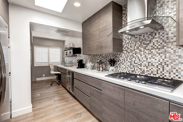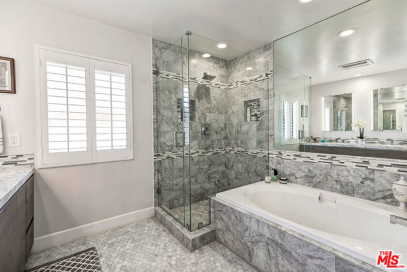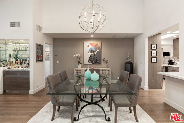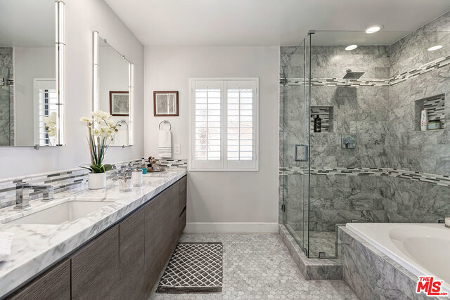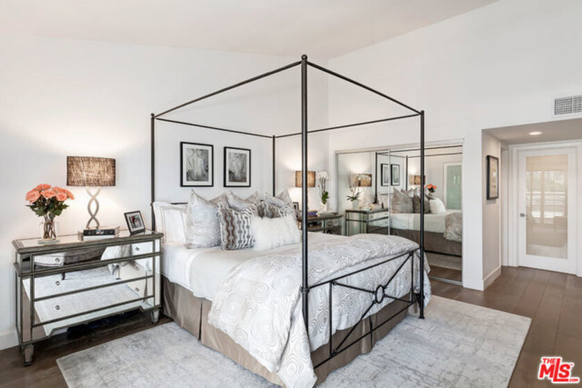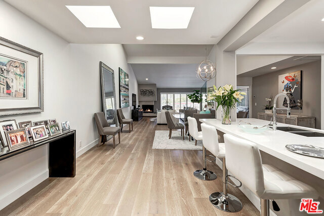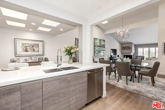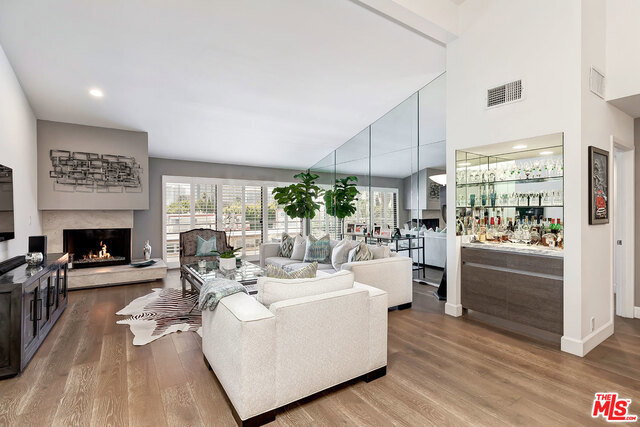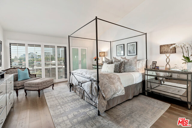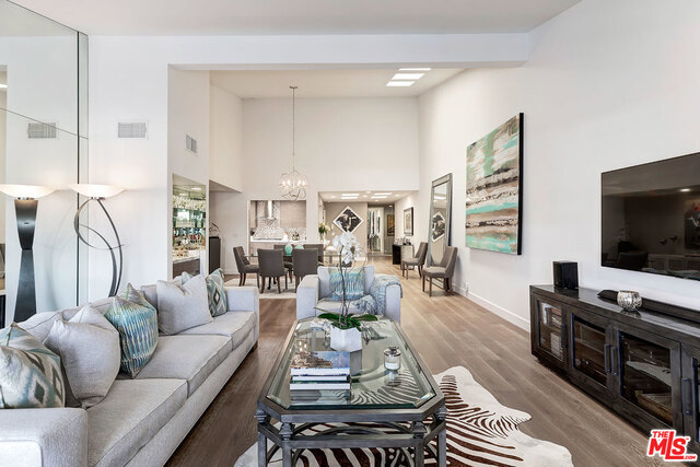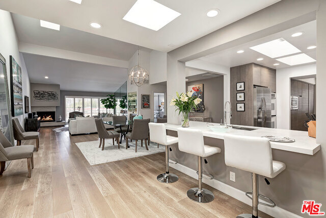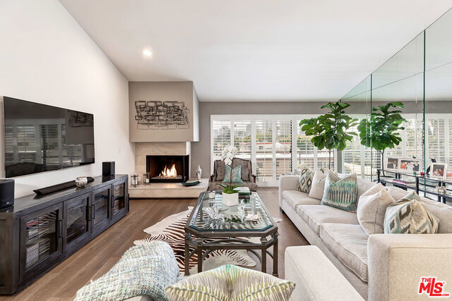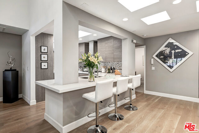 Super Chic Contemporary corner unit Penthouse close to Century City! Enjoy the stunning Sunsets to the West! High ceilings make this an architectural treasure with plenty of room for artwork. Remodeled in 2015, Wide plank wood floors and plantation shutters throughout. Living room has Fireplace, Bar and sliders to the balcony. Kitchen open to dining area and breakfast bar, custom cabinetry and Quartz counters. Large Master Bedroom with high ceiling walk in closet and wall closet. Master bath with Carrara Marble counter and tiled shower, separate soaking tub. 2nd bedroom has built in bookshelves and desk area and doubles as guest suite or office. Guest bathroom has a shower, marble counter and green glass above counter sink. Building has a Pool, Spa, Gym, Sauna with on site manager during the day and a night security guard. There are 2 deeded Tandem parking spaces and separate large storage unit. HOA includes Earthquake Ins, Water and Trash.
