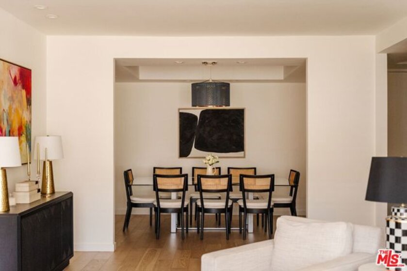Enter through double doors into a gracious foyer that sets the tone for this beautifully renovated and light-filled 2-bedroom, 2-bathroom residence in prime Westwood. Spanning approximately 1,737 square feet, the home offers an exceptional sense of scale, high ceilings, and a thoughtfully designed floor plan with generously proportioned living spaces throughout. The expansive living room is both warm and sophisticated, centered around a gas fireplace, and seamlessly opening to a private patio and a formal dining room an inviting setting for both everyday living and refined entertaining. The chef's kitchen has been tastefully updated with stainless steel appliances, sleek cabinetry, stone countertops, and exceptional storage throughout, and flows effortlessly into a spacious breakfast area. A separate laundry room and pantry enhance both convenience and functionality. The oversized primary suite serves as a true retreat, featuring a large walk-in closet, additional hall closet, and a spa-inspired bathroom with dual vanities, a soaking tub, and a glass-enclosed shower adorned with designer fixtures and European porcelain tile. A well-appointed secondary bedroom and updated guest bath complete the bedroom wing. Wide-plank oak hardwood floors, recessed LED lighting, updated electrical outlets and switches, and freshly painted interiors contribute to a crisp, modern aesthetic throughout. Additional amenities include secured access, side-by-side parking with storage, and a well-positioned, front-facing unit within the building. HOA dues include earthquake insurance and internet. Ideally located just moments from UCLA, Century City, Brentwood, and a vibrant mix of shops, restaurants, grocery stores, and everyday lifestyle amenities, this turnkey residence offers an exceptional balance of space, style, and convenience in one of the Westside's most desirable neighborhoods.