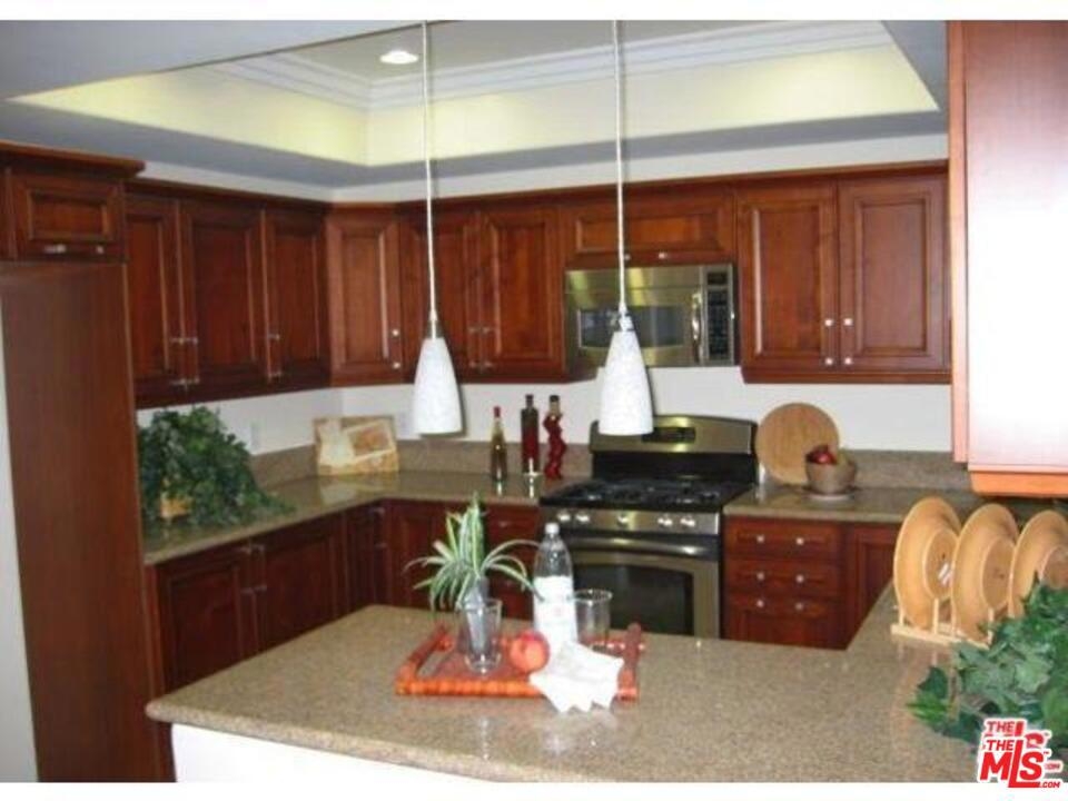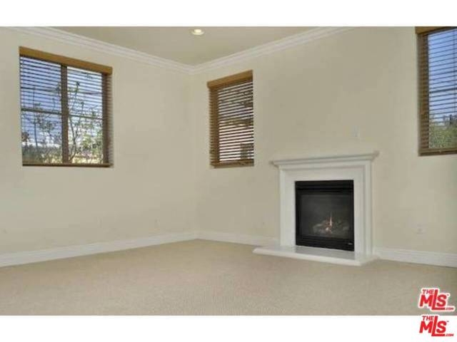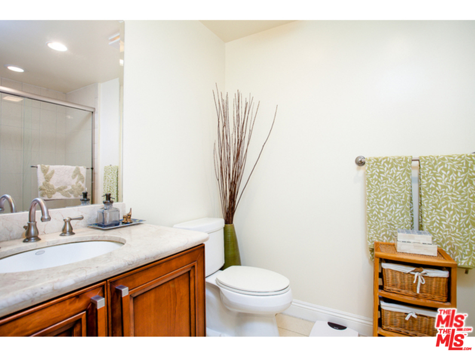 Elegant light filled single-level 3 bedroom in prime Westwood, built 2006. Tiled foyer leads to open living/dining area with gas fireplace, large balcony for gracious entertaining. Open gourmet kitchen with custom cabinetry, stainless appliances, granite counters, built-in micro, gas range, ample work space and storage. Powder room, laundry off entry foyer. High ceilings, crown moldings, lovely mix of tile, wood & carpet throughout. Master bedroom with fireplace, walk-in closet, en-suite bath with double sinks, spa tub and separate shower. Two additional bedrooms share full bath in hallway. Light rear unit faces north & east, with open city views. Quiet, private & only 1 shared wall. Elegant 2 story lobby, Cat 5 wiring, alarm system, private storage, rare 3 parking spaces. Fairburn School, minutes to Westwood Village, UCLA, Beverly Hills & Century City. HOA incl. water, hot water, bldg maint, EQ ins. Unit will not be delivered vacant. Tenant pays at $4350.