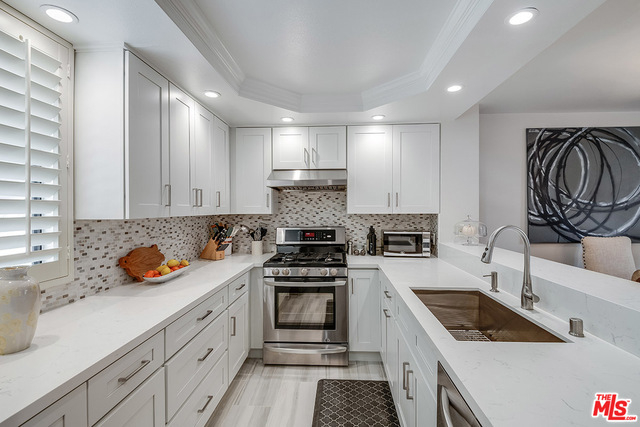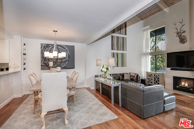 Stunning two bedroom + beautiful spacious loft, two and half bath townhome in sought after Westwood location. Gorgeous finishes, completely remodeled makes this turn-key home perfect for entertaining. Home features stainless steel appliances, beautiful cabinetry with vaulted, high ceilings and exquisite Walnut hardwood floors. A true Chef's Kitchen boasts a large deep farm sink, with top of the line fixtures. Lovely fireplace in living room. Dining room overlooking light-filled living room. Large master suite with spacious closets and marble double sink vanity. Two separate private exterior patios to enjoy. Direct access into unit from parking spots. Two side by side parking spots. Desirable location, minutes to Century City Mall, Beverly Hills, restaurants, movies and convenient 405 freeway access. HOA dues includes Earthquake insurance, SPA, water (and hot water), basic cable, trash and gardening! Laundry located inside unit conveniently located on same level as bedrooms. A true g