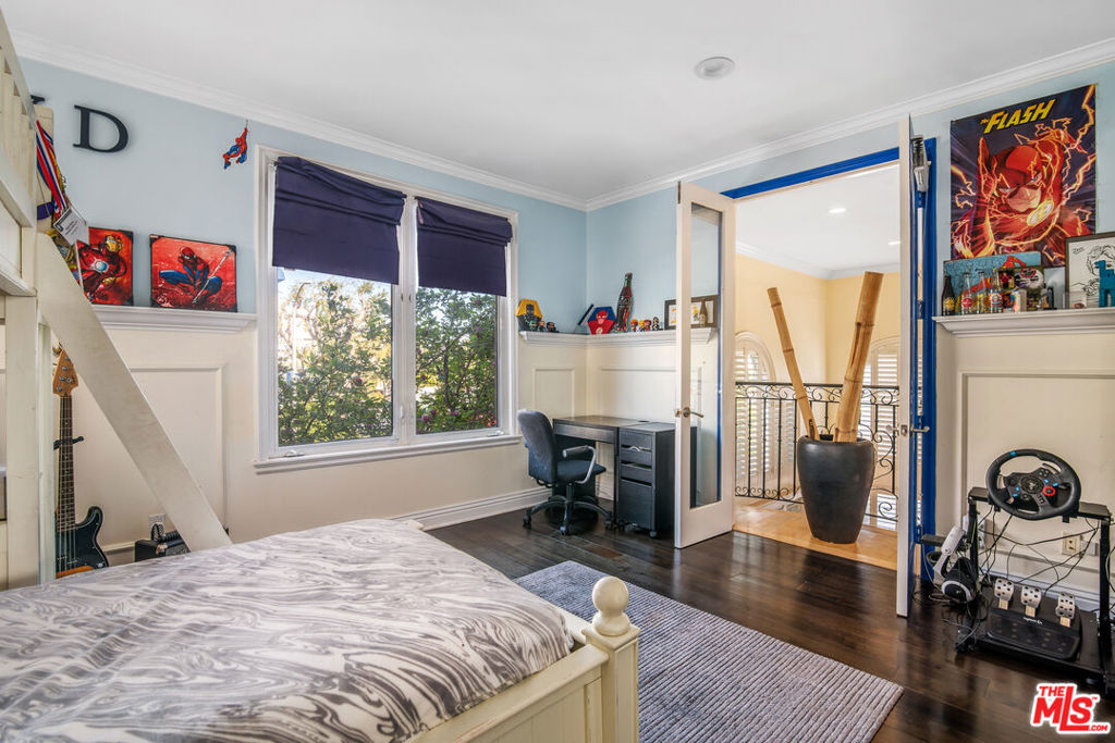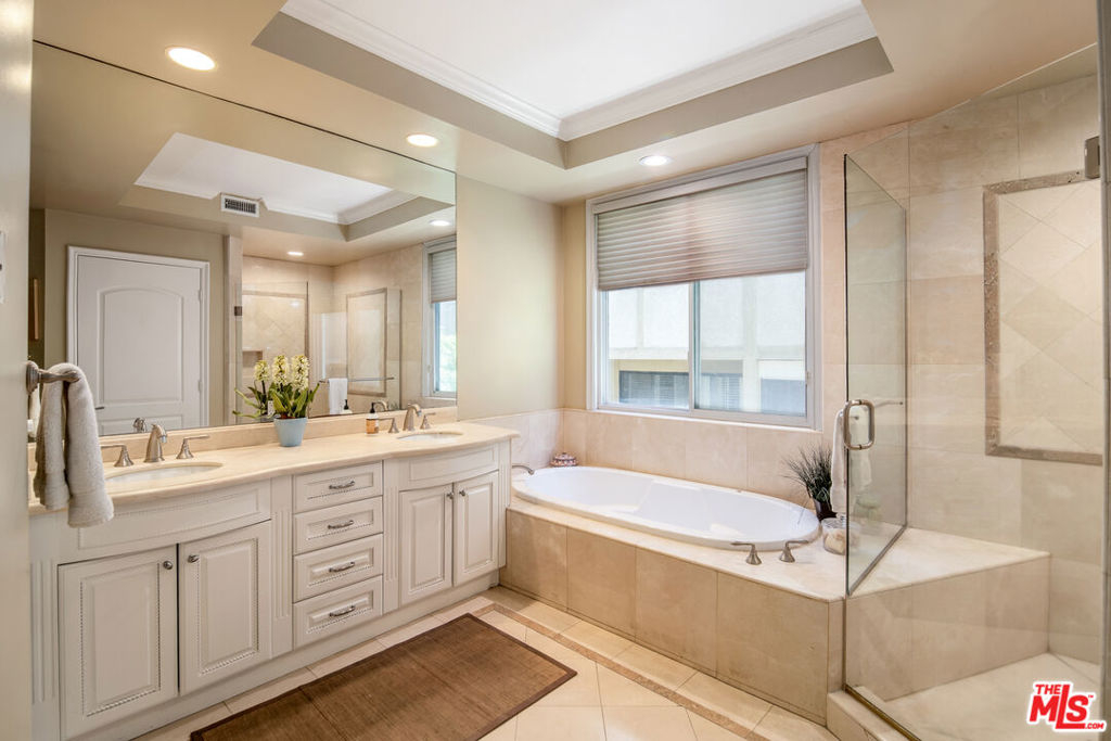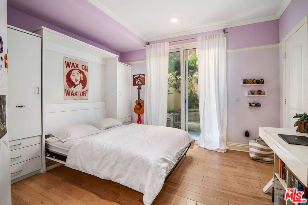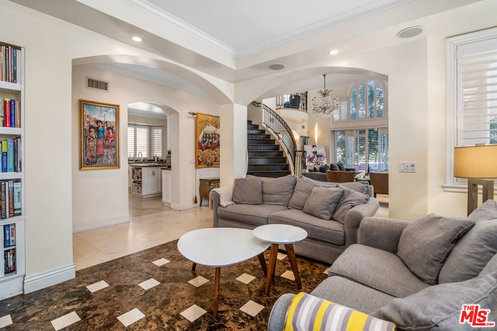 Rare Corner unit in premier Westwood location. This luxurious and impeccably designed townhouse shares no common walls, and feels like a single-family home. Offers an open floorplan with 4 bedroom / 3.5 bathroom plus den upstairs. 3 bedrooms upstairs and one bedroom downstairs. Luxurious master-suite with huge his and her walk-in closets. Spacious living room with vaulted ceiling, formal dining room, and large cook's kitchen with center island. Very bright and spacious with soaring ceilings, private two-car garage with covered parking spot & patio with fountain.Beautiful marble and custom maple wood flooring with attention to detail throughout. Oversized windows, elegant fireplace & glass French-doors. Small building with only 5 units. This is a must see. Highly desired Westwood Charter School.