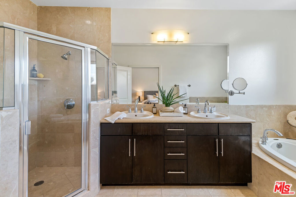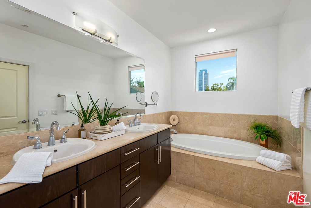 Upgraded and bright, peaceful 3 bedroom/2.5 bath condo in a newer construction building (2003). One of only two 3 bedroom units. Great location very close to Westfield Century City mall and the future Google Office campus. High ceilings with recessed lighting, hardwood floors, and a spacious open floor plan. Fireplace in the living room along with private balcony. Kitchen well appointed with granite counters and stainless steel appliances and "soft touch" cabinets and drawers. Primary bedroom on one side of the unit with two closets, and balcony with a view of Century City. The primary bath has a large soaking tub, shower and dual sinks. The other two bedrooms are Jack & Jill sharing a bath. Laundry in unit. Owners installed two Gen2 Tesla chargers with Wi-Fi access for side by side parking spaces, and there are 7 guest parking spots. There is extra storage for the unit in the garage area and the building has a community exercise room. Westwood Charter Elementary (buyer to verify).