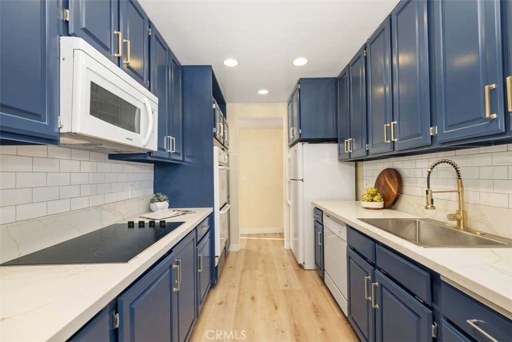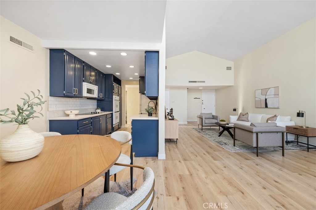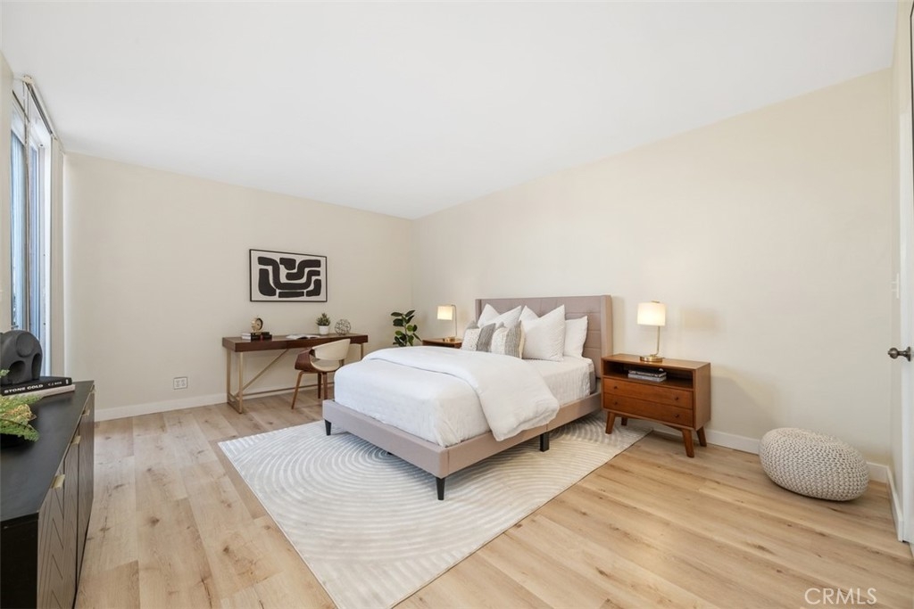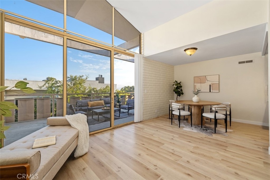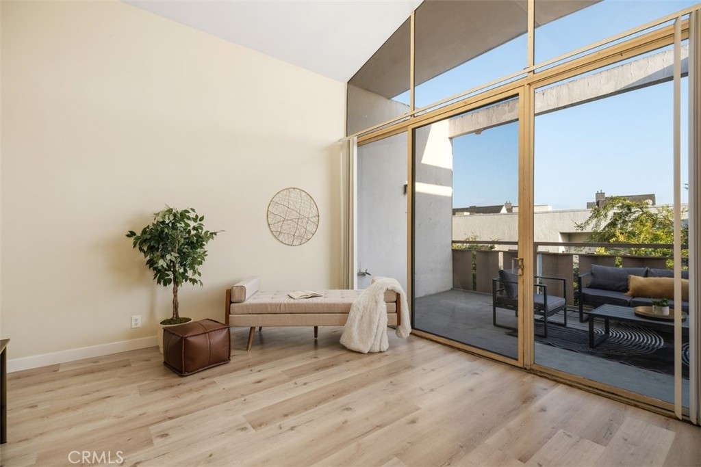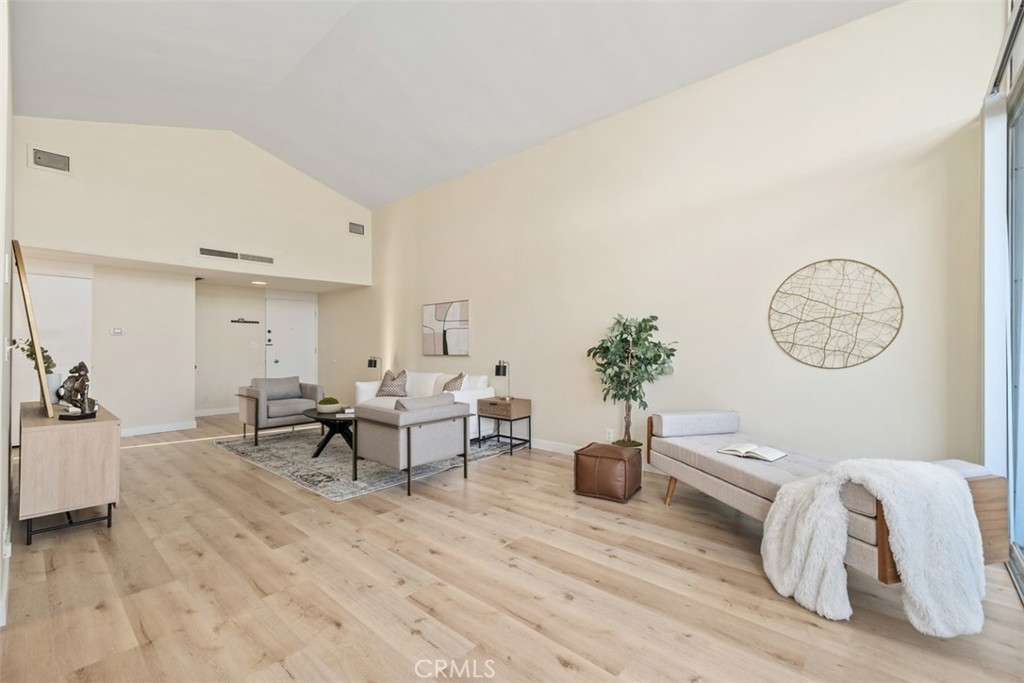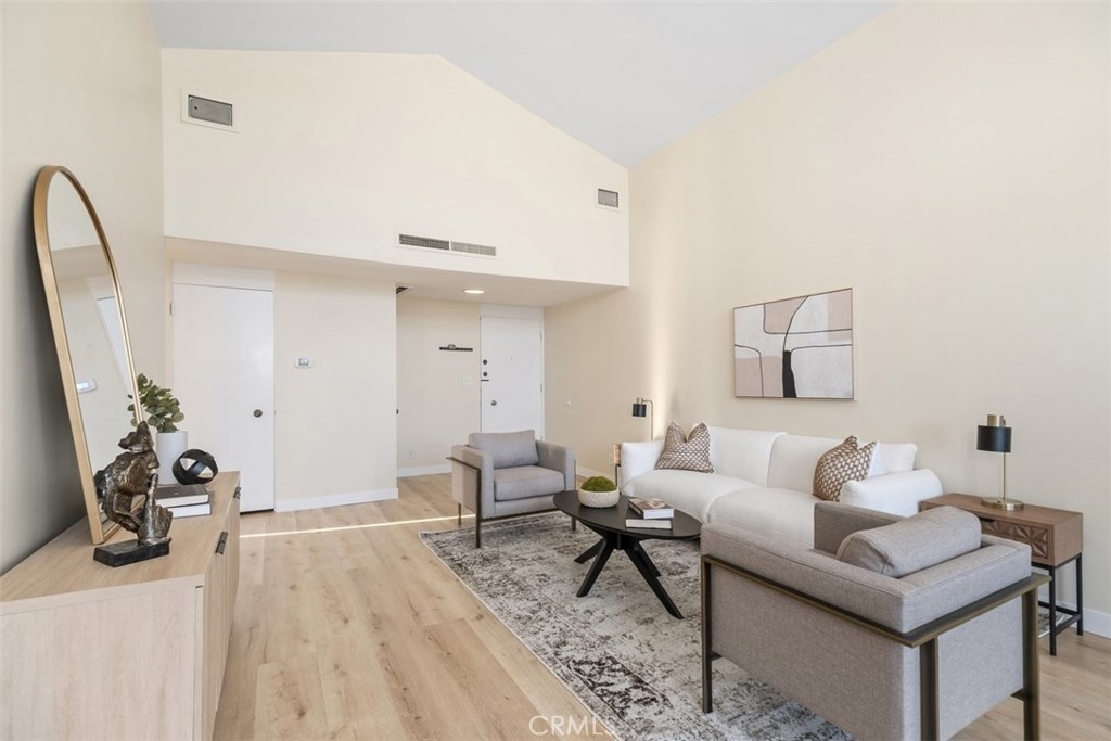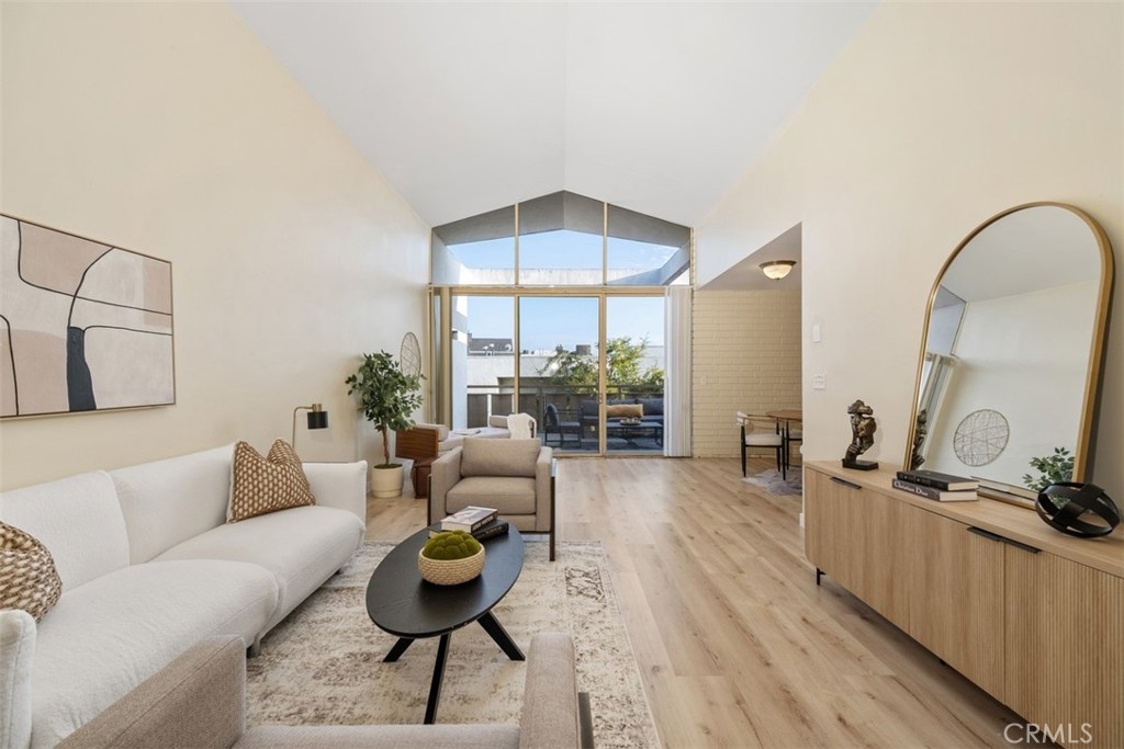 Welcome to the top floor Penthouse "loft like'' charm in the heart of Westwood, and walking distance (0.3mi) to UCLA. This beautifully renovated unit boasts impressive features with soaring 16-foot ceilings and an expansive floor plan. Stepping inside the 2-bedroom 2-bathroom condo to discover a spacious, light-filled living area with brand new luxury vinyl flooring, and a fresh coat of paint throughout. With the extra large windows, enjoy the seamless indoor-outdoor living with a private balcony, perfect for relaxing or entertaining while taking in the views of the surrounding neighborhood. The contemporary kitchen is a chef's delight with new sleek quartz countertops, subway tile backsplash and fixtures that complement the unit's modern aesthetic. Additional highlights include a new HVAC system installed in 2023, ensuring year round comfort, as well as in-unit laundry hookups, with access to additional communal laundry facilities, and additional storage space. The condo also includes two side-by-side gated covered parking. Don't miss this opportunity to make the Penthouse your home!