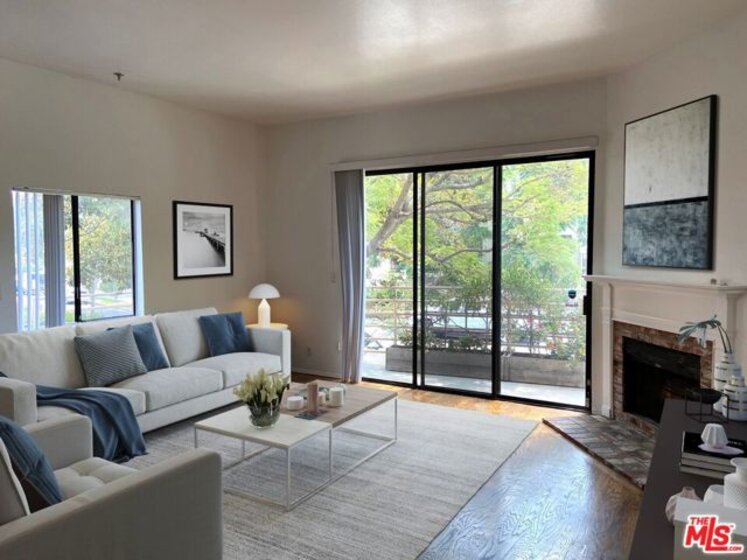 Beautiful light & bright 2bd/2ba front corner unit is move-in ready! With nearly 10ft high ceilings, the open floor concept is an impressive space within this intimate 12 unit architectural building in prime Westwood. This unit feels like a home with lovely hardwood floors, a fireplace, great entertaining flow, and no shared walls. The kitchen is open to the living and dining spaces and is complete with stainless steel appliances. Two separate unit entrances are ideal to either entertain formally, with double door entry and sitting area, or the patio entry for everyday convenience. The spacious primary suite is a restful retreat with high ceilings, a deep walk-in closet, and a double sink vanity in the en suite bathroom. The second bedroom features a generously sized closet, and hardwood flooring is allowed in both bedrooms! Create your indoor/outdoor entertaining experience to gather with family and friends, or just take in the California weather on the large wrap-around patio. Other features include; sxs washer/dryer, HVAC installed 2020, 2-car parking, and a dedicated storage space. Building has EQ ins. This sought-after walkable neighborhood within the Fairburn School District, is a perfect owner user or investment property. Everyday errands and shopping are close at hand: Bristol Farms, Sprouts, UCLA, Century City, and moments away is the anticipated Google campus. Furnishings are virtually staged.