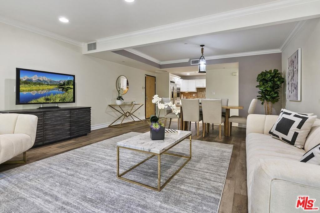 Chic updated 3 bed/2.5 bath w/ contemporary designer touches throughout & spacious patio in prime Westwood location. South facing unit w/ open floor plan w/ spacious living room including fireplace and double sliding doors overlooking the greenery of the privately landscaped double sized patio spanning from living room to primary bedroom. Large dining room w/ soffit ceiling and crown molding. Oversized gourmet kitchen with granite countertops, stainless steel appliances including Viking double ovens and 6-burner range top & wine fridge. Primary bedroom with fireplace, sliding door to private patio, double size walk-in closet. Primary bathroom with marble finishes, dual basins and separate bath and shower. 2 additional bedrooms and additional full bathroom and powder room. Features include newer contemporary flooring, upgraded LED recessed lighting, Nest thermostat, in-unit laundry area with storage, newly painted interior including cabinetry & wired alarm system. 2-tandem secured parking spaces with 240 volt outlet for electrical vehicle charger, guest parking & gym. Ideal proximity to Century City Shopping Mall retail & restaurants, UCLA, Westwood Blvd. eateries and retail and the New Google Campus. Westwood Charter School. Move-in ready!