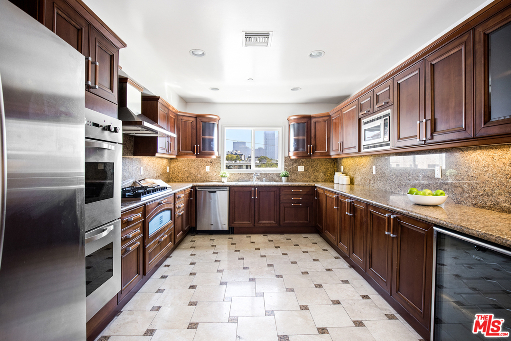 Enjoy the incredible and expansive panoramic views in this bright and spacious 3 bedroom & 2.5 bath contemporary condo in prime, sought-after Westwood location. South and East facing corner unit draws in beautiful light into the bright and inviting open floorplan which boasts living room gas fireplace and private wraparound balcony. Entertainer's gourmet kitchen with stainless steel appliances, 6-burner range with two ovens, wine fridge, and granite countertops. Master bedroom features gas fireplace, large walk-in closet and spa-inspired bathroom. Laundry in unit. Separate powder room. 2 assigned tandem parking spaces, in secure, gated community garage with guest parking. Very well-maintained condominium complex with elevator and fitness center. Acclaimed Westwood Charter Elementary school district. Ideally and conveniently located to UCLA and renowned retail and dining at Westfield Century City Mall and Beverly Hills. Be prepared to cherish this healthy and exclusive lifestyle.