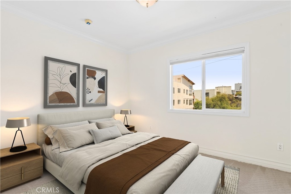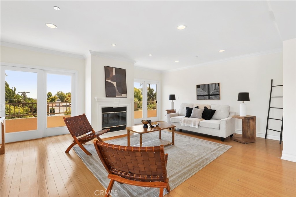 Proudly introducing this spacious 3-bedroom, 2.5-bath corner unit spanning 1,740 sq. ft., perfectly positioned in a highly sought-after Westwood area. With a desirable southeast orientation, this home captures abundant natural light and offers panoramic depth views from its wraparound balcony. The open-concept living and dining area showcases elegant bamboo flooring, recessed lighting, and a decorative fireplace, all seamlessly connected to the balcony through three sliding glass doors—ideal for both relaxing and entertaining. The updated kitchen features quartz countertops, crisp white cabinetry, stainless steel appliances, a wine fridge, and a farmhouse sink. The primary suite boasts plush carpet, a walk-in closet, and sweeping city views. Its en-suite bath offers a spa-like retreat with a freestanding soaking tub and separate shower. Two additional bedrooms also feature fresh carpet and share a well-appointed bath. In-unit laundry is conveniently located in the hallway. Residents enjoy a well-maintained complex with an elevator, fitness center, serene courtyard, two assigned parking spaces with EV charger capability, and guest parking. All of this is set in an unbeatable location moments from UCLA, Westfield Century City, Westwood Village, Beverly Hills, and within the coveted Westwood Charter School district.