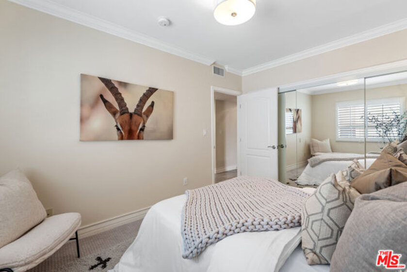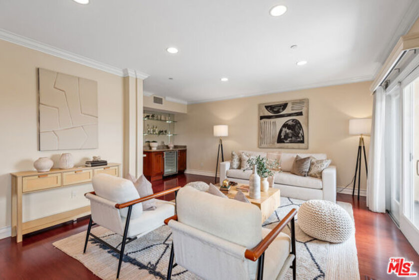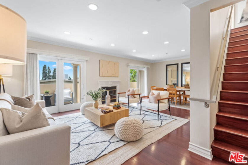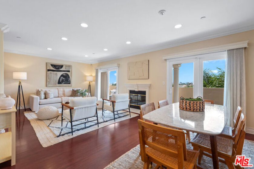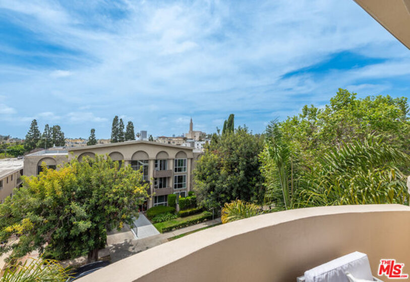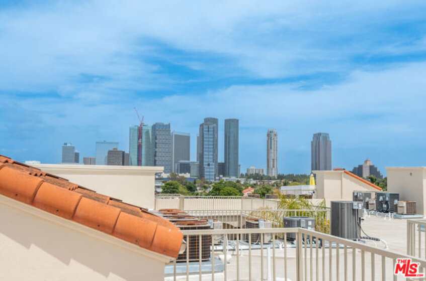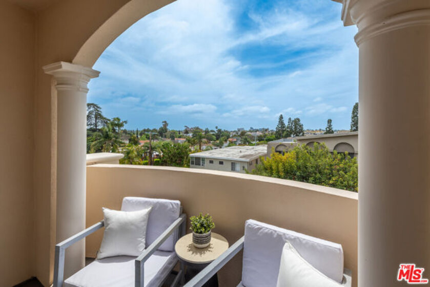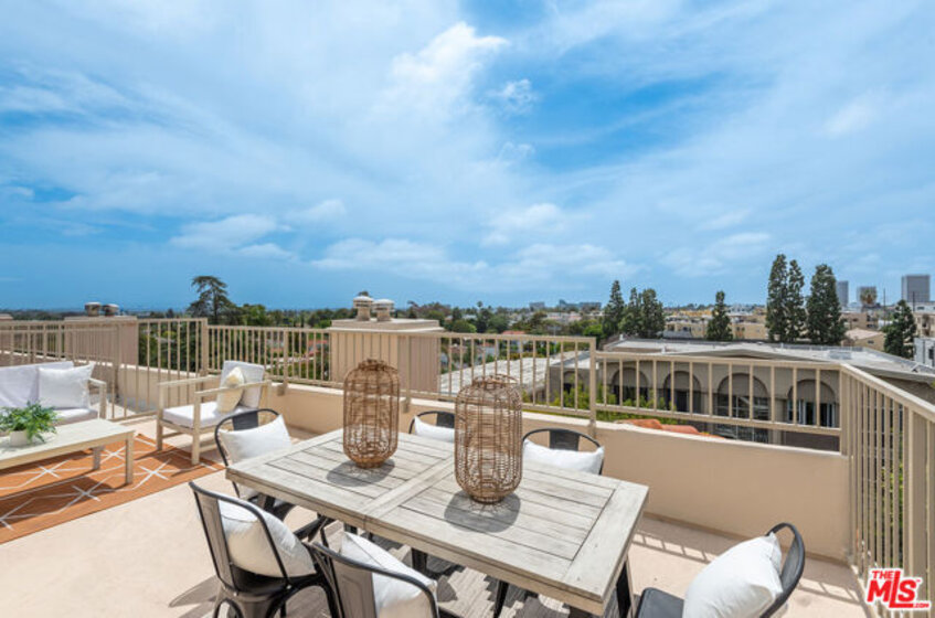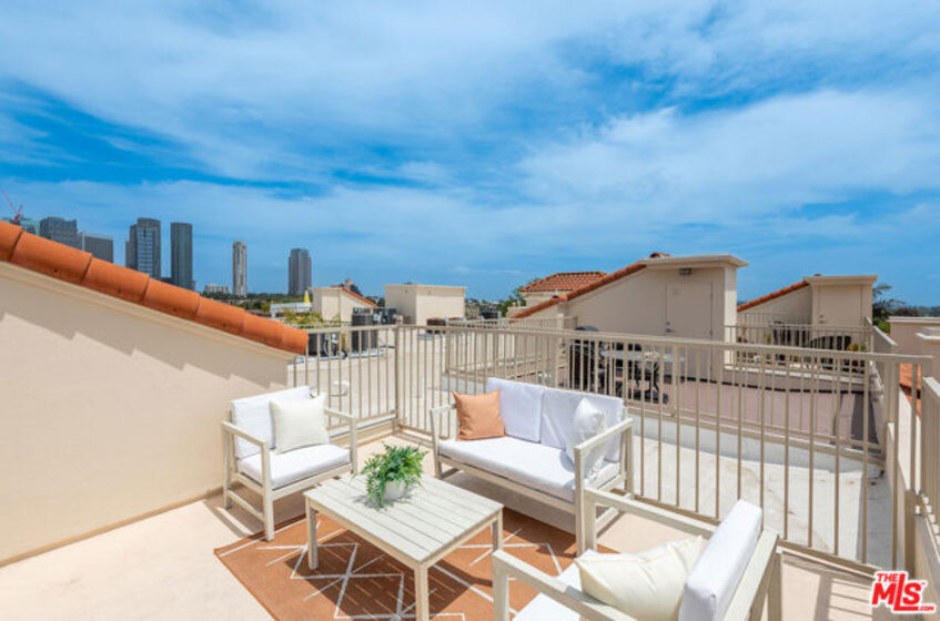 Experience penthouse living at its finest in this rare, front-facing northwest corner residence that seamlessly blends elegant interiors with exceptional outdoor living. Bathed in natural light and perched above a beautiful tree-lined street, this stunning single-level home features four separate outdoor spaces, including an expansive private rooftop deck of approximately 300 square feet perfect for entertaining, unwinding, and soaking in breathtaking city and treetop views with spectacular sunsets as your daily backdrop. The open-concept living and dining area is designed for both comfort and entertaining, featuring rich crown moldings, a cozy fireplace, and two front-facing balconies that invite the outdoors in. The chef's kitchen is a culinary dream, outfitted with stainless steel appliances, double ovens, and expansive counter space including a casual dining bar. The generously sized primary suite is a true retreat, complete with its own fireplace, private balcony, large walk-in closet, and a luxurious, spa-inspired bathroom featuring stone floors, dual sinks, a soaking tub, and a separate glass-enclosed shower. Two additional spacious bedrooms offer ample closet space, each thoughtfully outfitted for optimal storage. A stylish guest bathroom and an in-unit laundry area complete this refined, thoughtfully designed home. Located in a desirable, newer courtyard-style building a gated parking garage with guest parking, and the peace of mind that comes with secure, boutique living. Positioned in an unbeatable location just moments from UCLA, Westwood Village, Century City, and Beverly Hills, and within the sought-after Westwood Charter School district. This a turnkey opportunity to enjoy luxury penthouse living in the heart of the Westside.