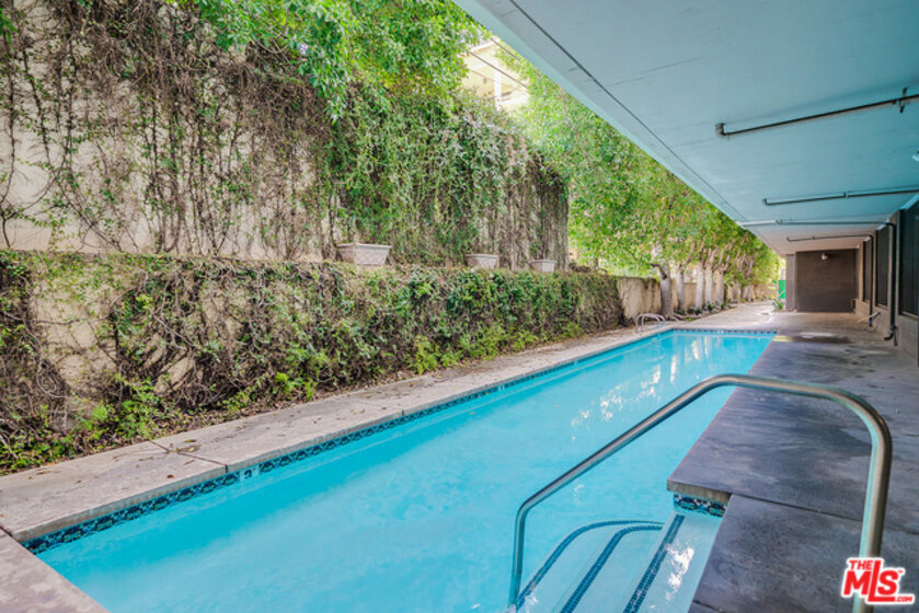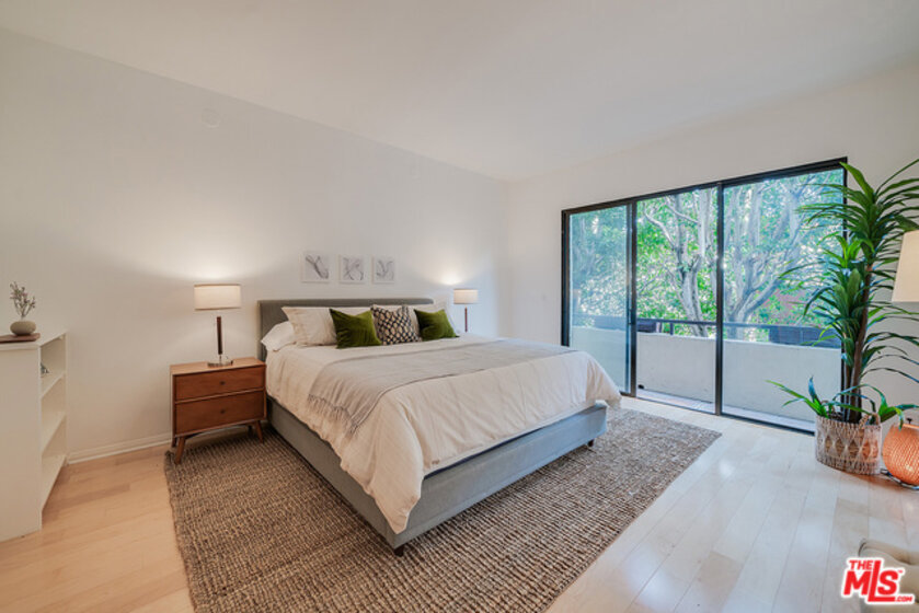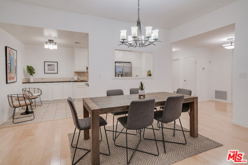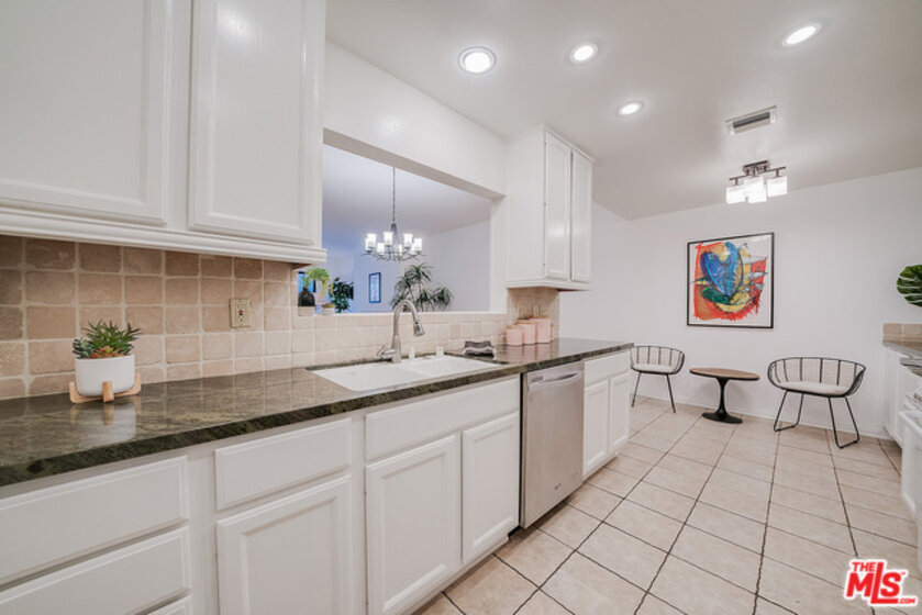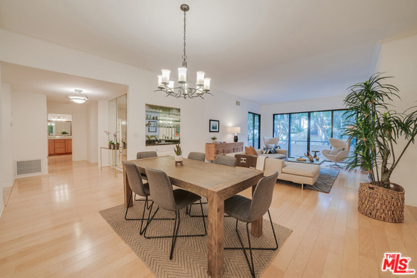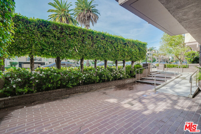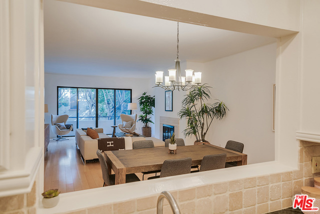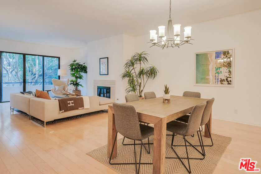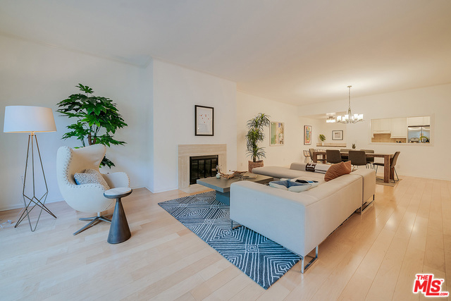 Inviting, peaceful single level unit in highly desirable Westwood neighborhood featuring hardwood floors, high ceilings & spacious rooms with walls of glass throughout that open onto the private patio. The elegant living room w/statuesque fireplace is open to the dining room with chandelier and wet bar. An attached granite eat-in kitchen is outfitted w/brand new stainless steel stove & fridge. The master suite boasts two walk in closets, two individual vanity areas with sinks & a separate tub and shower. The 2nd bedroom is nearby the 2nd full granite bathroom & also offers a walk-in closet. A convenient separate in-unit laundry room accommodates side by side W & D + storage. The well maintained building features a lap pool, spa, gym, conference room w/kitchen, updated lobby, EQ insurance & strong HOA reserves. The unit comes with two parking spots and a small storage space in a secure, gated garage. Within Westwood Charter boundaries, subject to availability.