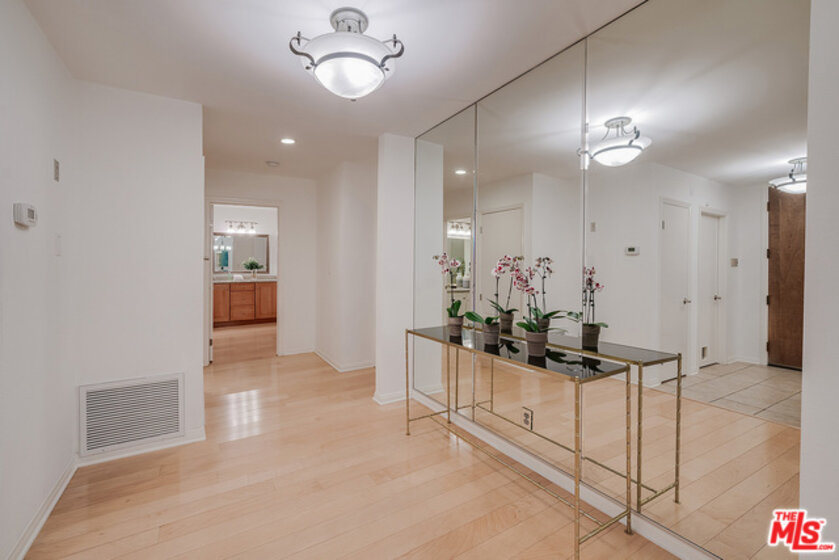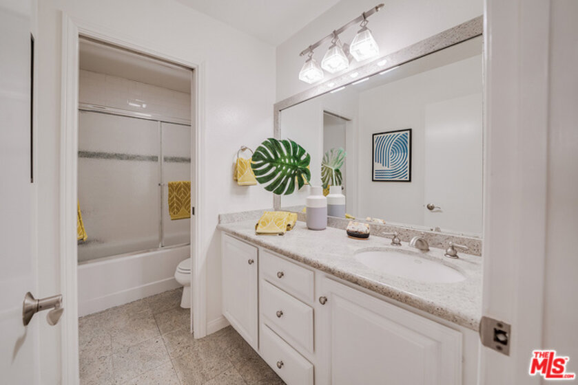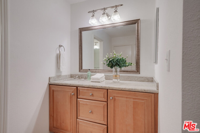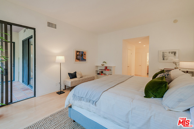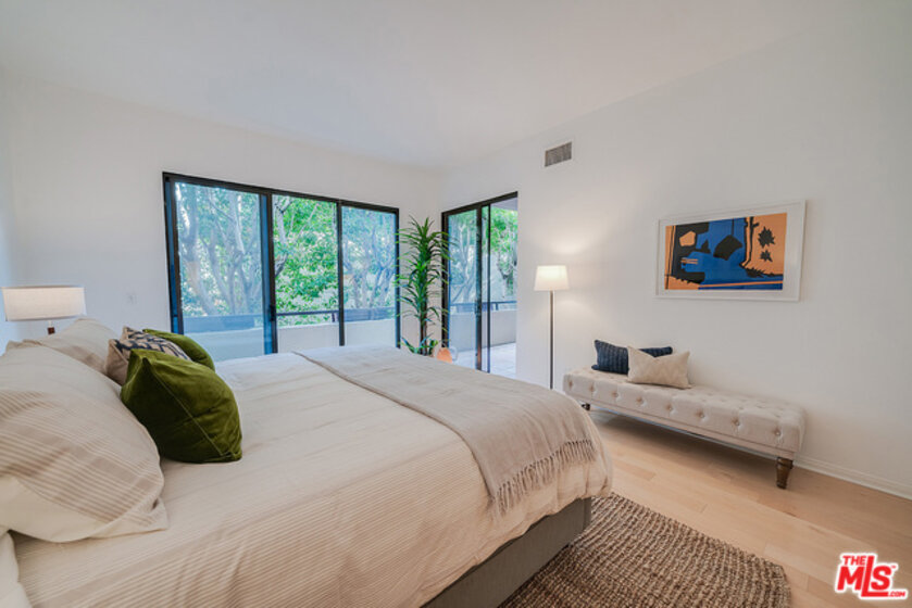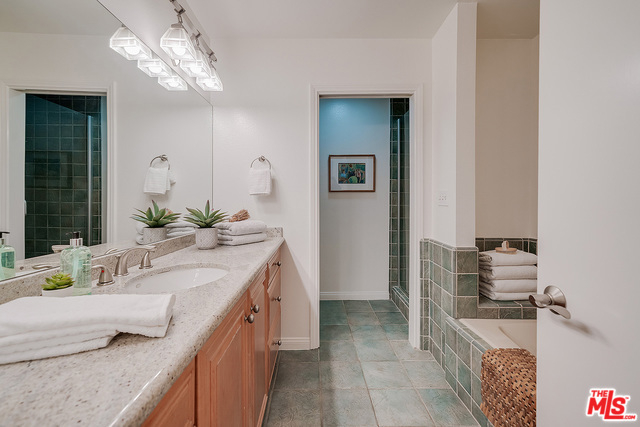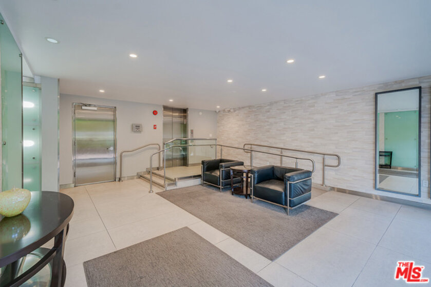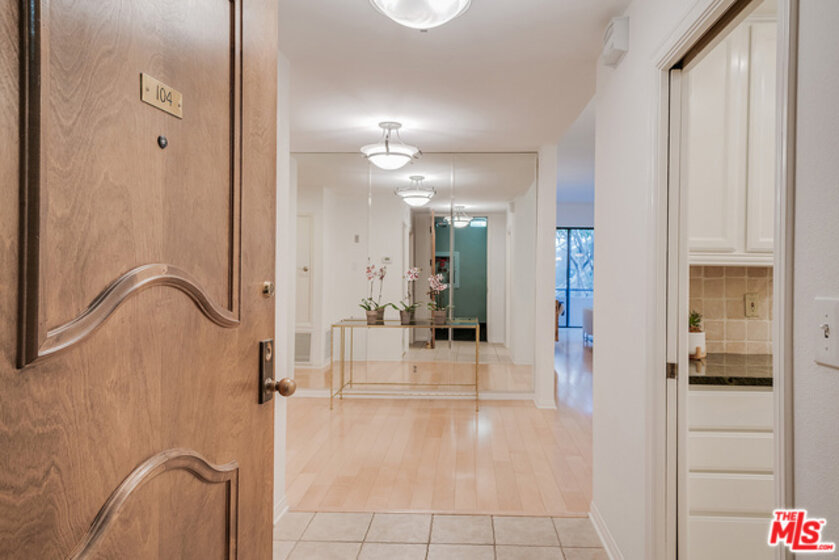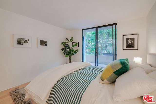 Inviting, peaceful single level unit in highly desirable Westwood neighborhood featuring hardwood floors, high ceilings & spacious rooms with walls of glass throughout that open onto the private patio. The elegant living room w/statuesque fireplace is open to the dining room with chandelier and wet bar. An attached granite eat-in kitchen is outfitted w/brand new stainless steel stove & fridge. The master suite boasts two walk in closets, two individual vanity areas with sinks & a separate tub and shower. The 2nd bedroom is nearby the 2nd full granite bathroom & also offers a walk-in closet. A convenient separate in-unit laundry room accommodates side by side W & D + storage. The well maintained building features a lap pool, spa, gym, conference room w/kitchen, updated lobby, EQ insurance & strong HOA reserves. The unit comes with two parking spots and a small storage space in a secure, gated garage. Within Westwood Charter boundaries, subject to availability.