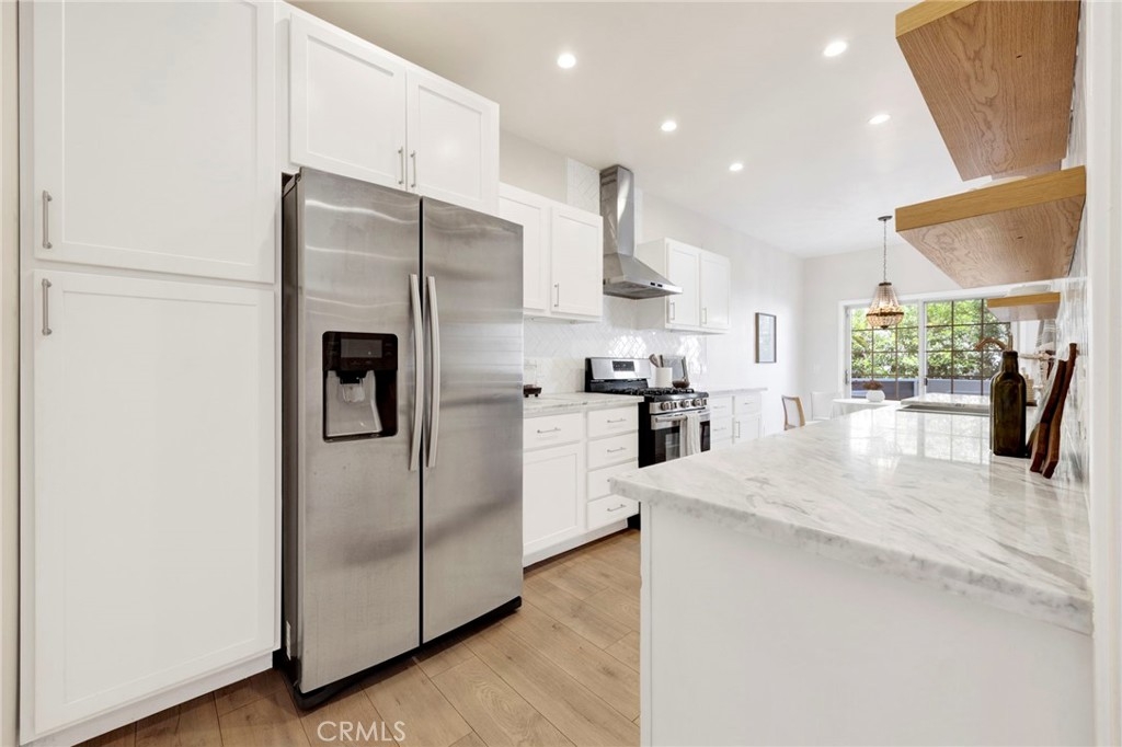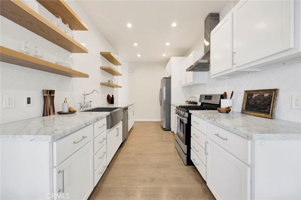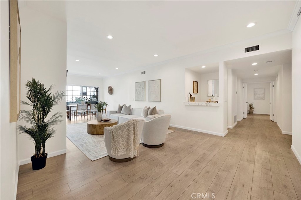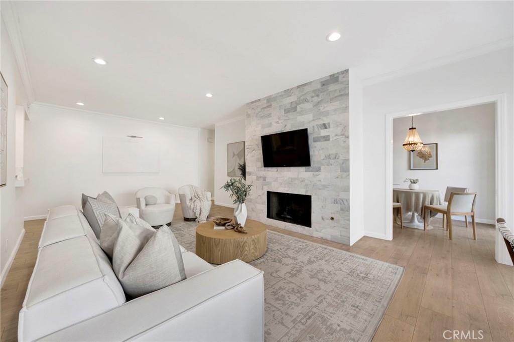 Significant Price Improvement! Experience the height of sophisticated urban living in this expansive, sun-drenched condominium, perfectly situated in the heart of Westwood! The open-concept layout offers a seamless flow between the living and dining areas, making it ideal for both everyday living and entertaining. Floor-to-ceiling windows flood the space with natural light, while a cozy fireplace and built-in bar add warmth and character. Step out onto your private balcony, accessible from both the living room and kitchen—perfect for enjoying your morning coffee or unwinding at the end of the day. The kitchen boasts abundant storage and ample counter space, thoughtfully designed for both preparation and cooking. It is elegantly appointed with marble countertops, a full-height tiled backsplash, and stylish open wood shelving that adds a touch of timeless charm. The breakfast nook is perfect for casual dining, while the formal dining room sets the stage for an intimate dinner or an elegant soirée. The primary suite is a true retreat—featuring two walk-in closets, its own private balcony, and a luxurious en-suite bathroom adorned with marble, complete with a spa shower and a clawfoot soaking tub. The spacious second bedroom also includes an updated full en-suite bath, and the bonus room/den offers flexibility as a home office, media room, or even a third bedroom. Additional highlights include a guest powder room, in-unit laundry room, central HVAC, and two side-by-side secured gated parking spaces with ample guest parking. The HOA covers earthquake insurance, maintenance, water, and trash—all within a well-maintained building offering easy access to UCLA, Westwood Village, Century City and within walking distance to the highly rated Westwood Charter Elementary School!