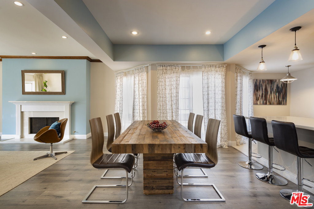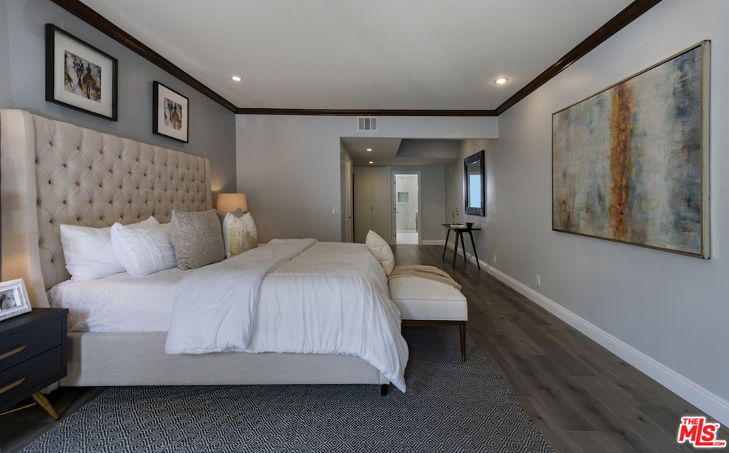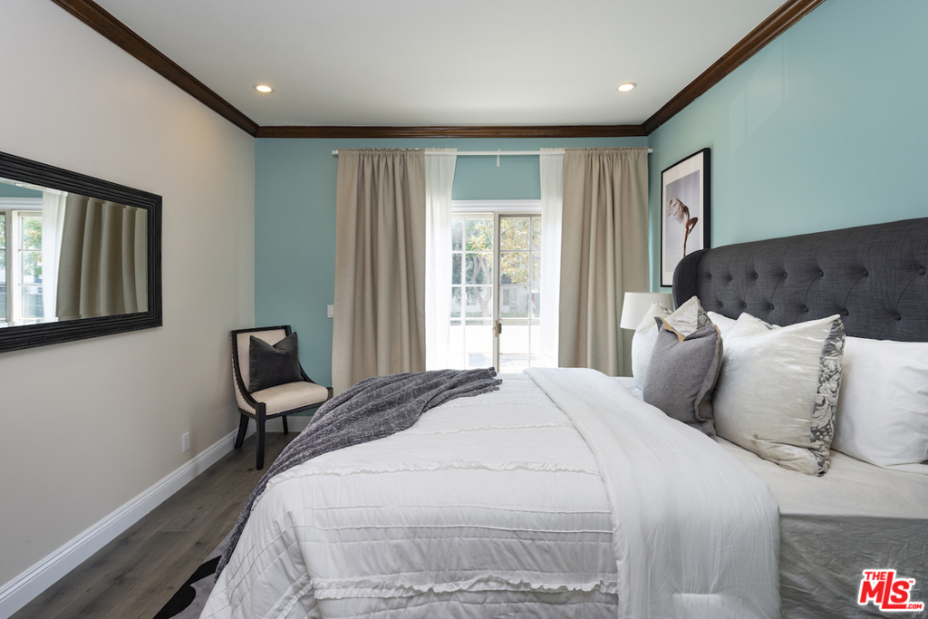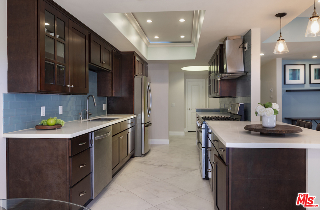 In over 1,800 square feet, this recently renovated two-bedroom, three-bathroom residence is conveniently situated in prime Westwood. The formal entry, with skylight, connects to an open concept living room with gas fireplace and dedicated dining area, all framed by oversized windows and a private patio. The updated kitchen is equipped with recently upgraded stainless steel appliances, sleek white quartz countertops, and a breakfast nook. Through solid mahogany double doors, the master suite is adorned with a large bay window with sliding glass door leading to a private balcony, walk-in closet and spa-like bathroom with double vanity, soaking tub and rainfall shower. Other amenities include in-unit washer-dryer, two parking spaces in a secured garage, 12 guest parking spaces, Nest Thermostat, two storage units and Westwood Charter School District.