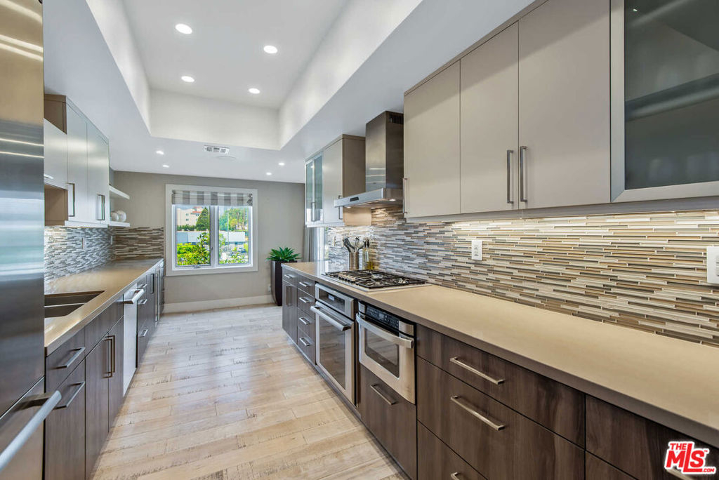 Unique opportunity to live in a beautifully remodeled contemporary penthouse in prime Westwood. With over 18-foot-high ceilings and floor-to-ceiling windows, this unit is bright, spacious, and flooded with natural light. The floor plan is open and ideal for entertaining and graceful living. The chef's kitchen features tons of counter space and top-of-the-line stainless-steel Thermador Professional series appliances. The spacious dining area leads to the living room with a soaring ceiling and east-facing windows. The primary bedroom includes dual closets, high ceilings, and an updated bathroom with Caesarstone countertops, double vanity, a soaking tub, and separate shower. The second-floor loft is a flexible space perfect for a home office and leads to a huge private rooftop deck with over 350 square feet of outdoor space. Multiple outdoor spaces, side by side laundry, Nest Thermostat, as well as custom lighting and sound round out this exclusive residence. Fantastic home in the center of the city!