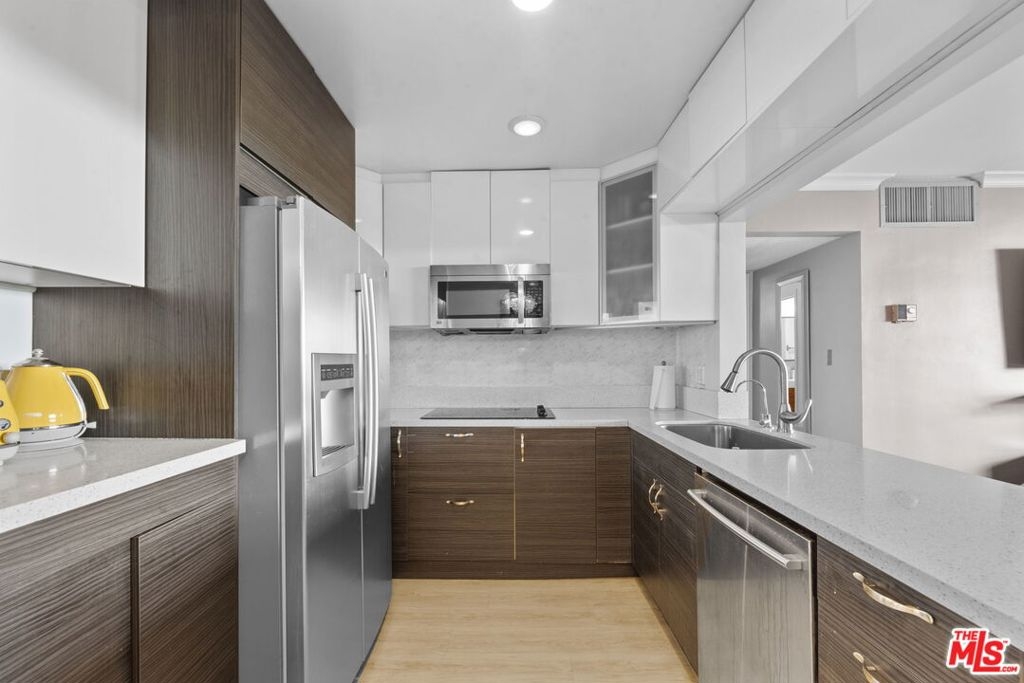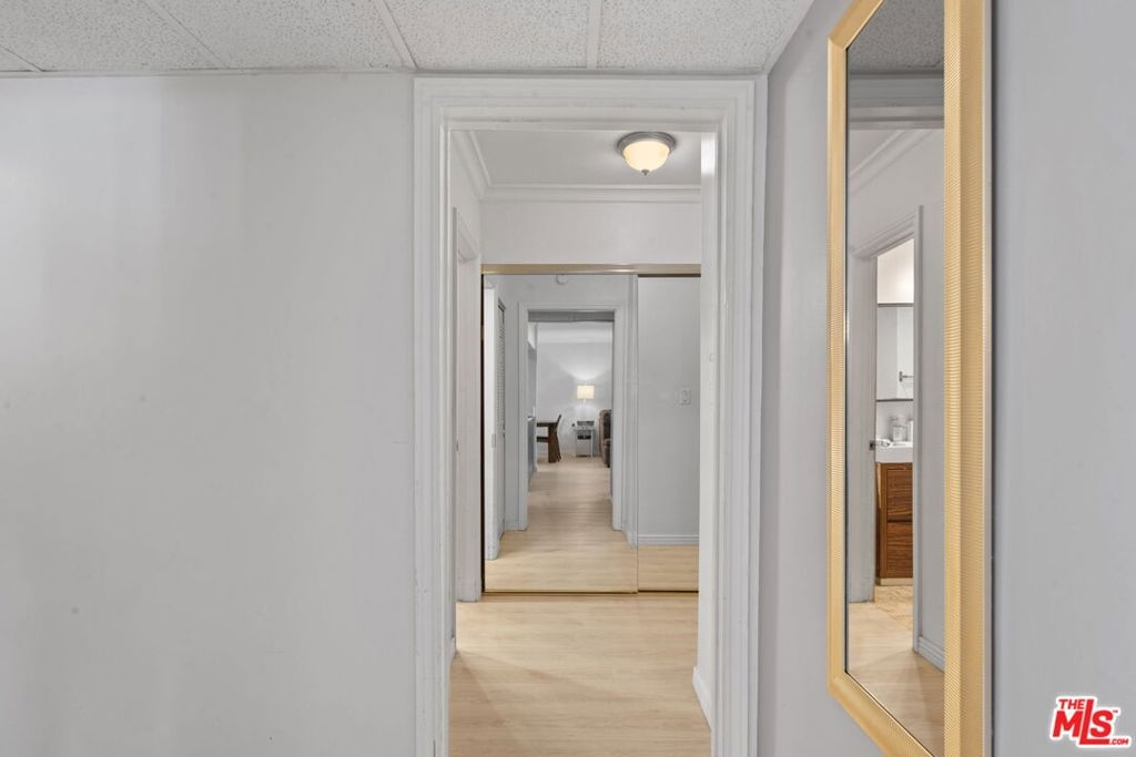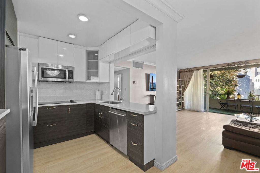 Welcome to the highly coveted Westwood locale, situated close to Westwood Village, UCLA, Century City Mall, and an array of upscale dining establishments. Discover the allure of this charming one-bedroom, one-bathroom condo nestled within Westwood Garden, a distinguished 60-unit mid-century building masterfully developed by the acclaimed Oscar Altmanan amateur sculptor and architect whose custom artwork graces the atrium. This exquisite unit radiates spaciousness and brightness throughout. The living room showcases a thoughtfully integrated fireplace and extends seamlessly to a sizable balcony, offering a panoramic city view, ideal for both afternoon tea and a seamless indoor/outdoor living experience. Hardwood floors grace every inch of this meticulously remodeled unit, which boasts updates to the bathroom, kitchen, and flooring. The well-appointed kitchen, featuring a breakfast bar, effortlessly connects to the dining area and living room. The bedroom, generously proportioned, accommodates a king-size bed and a dedicated work area. Residents of this prestigious building enjoy an array of amenities, including a spa, pool, rooftop deck, recreation room, and convenient community laundry facilities on each floor. Secured by a gated garage, this unit includes one covered parking spot and a personal storage cabinet. Monthly HOA dues encompass water, gas, and high-speed cable internet, ensuring a comprehensive and hassle-free living experience in the heart of Westwood's prime locale.