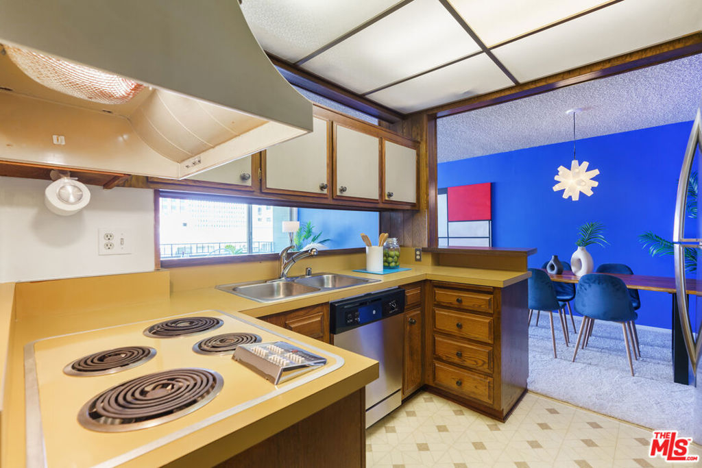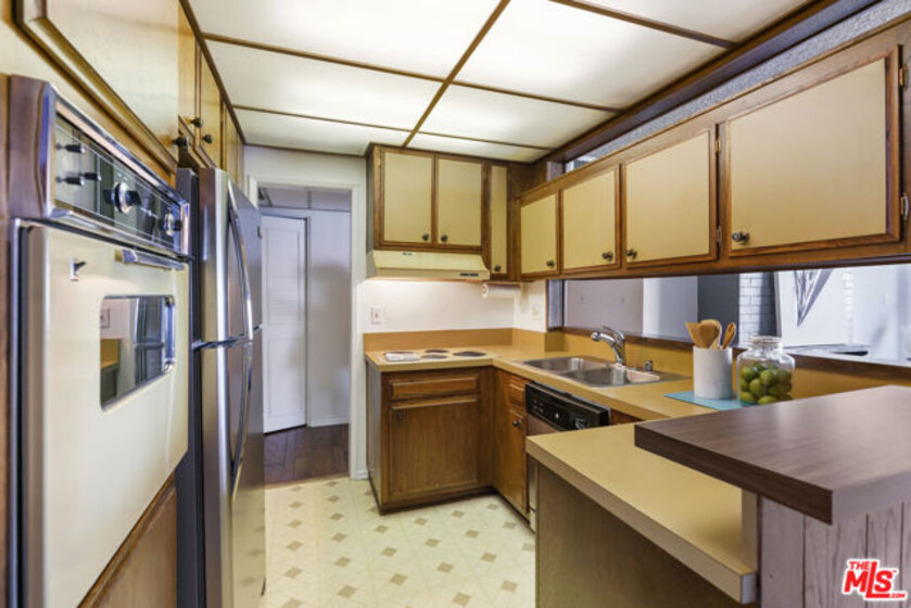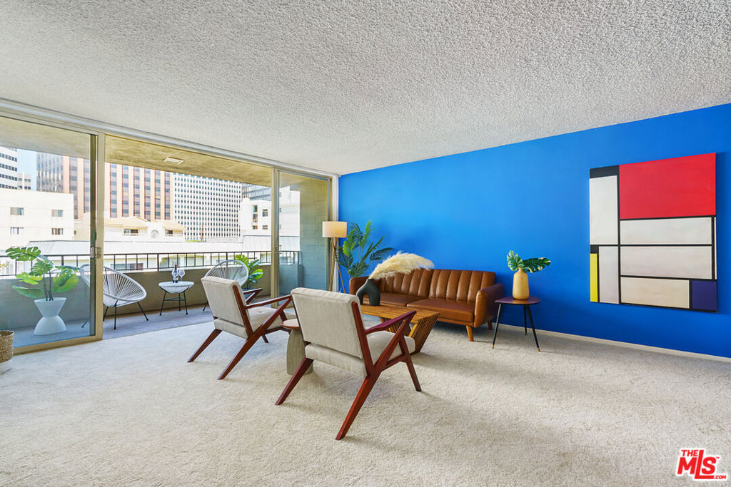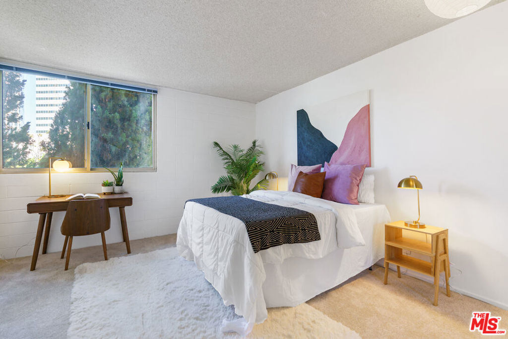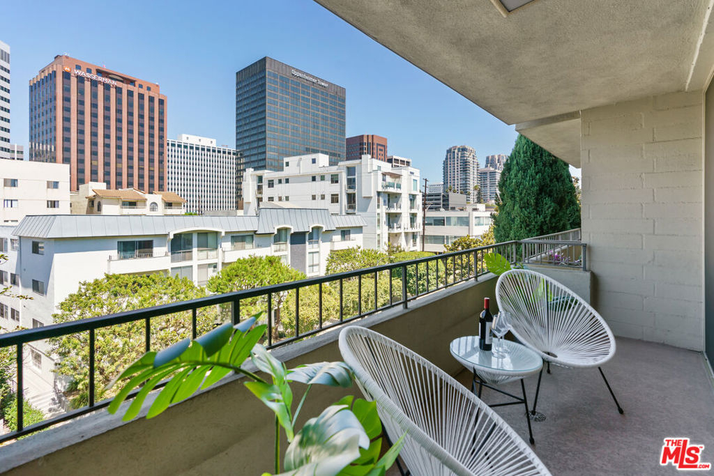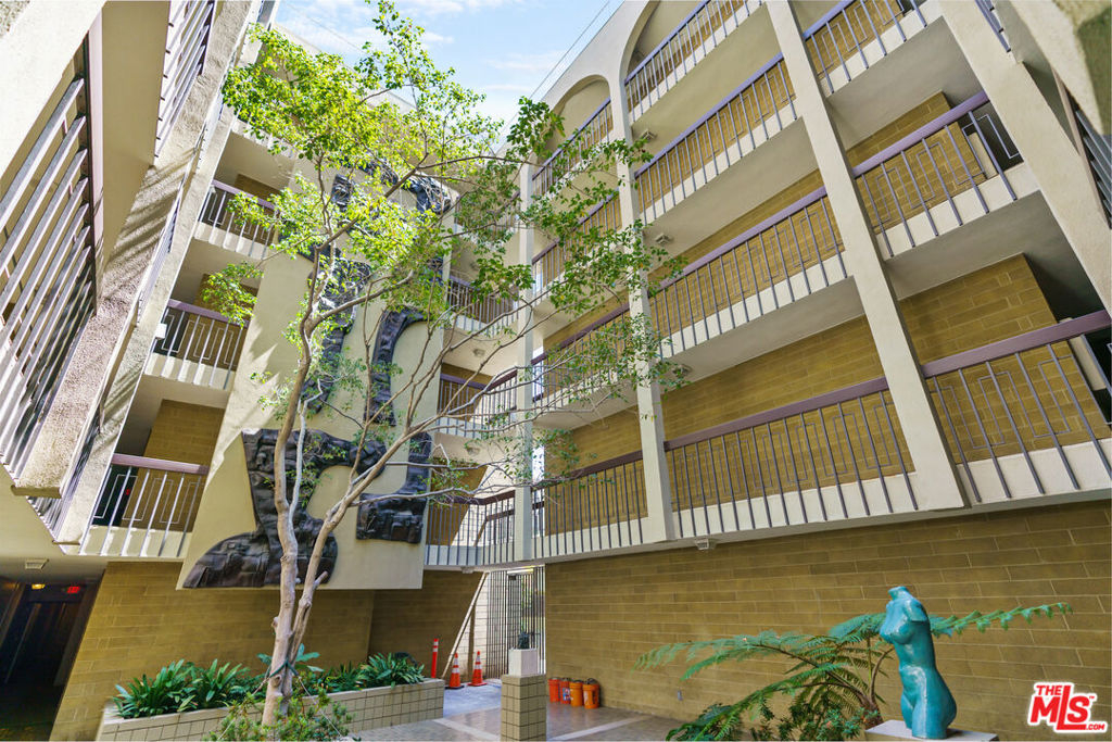Charming one bedroom one bathroom condo at the Westwood Gardens, a 60-unit mid-century building near Westwood Village and UCLA. The building was designed by Oscar Altman, an architect and sculptor whose custom artwork is featured in the atrium of the building. The unit is bright and spacious with city views throughout. The kitchen with breakfast bar is located adjacent to the dining area and flows seamlessly into the living room and large balcony. The bedroom has plenty of space for a bed as well as a work area. One covered parking spot in the attached gated garage and a personal storage cabinet in a locked room on the garage level are included. The building also offers amenities including pool, spa, rooftop deck, and recreation room. Monthly HOA dues include water, gas, and high speed cable internet.