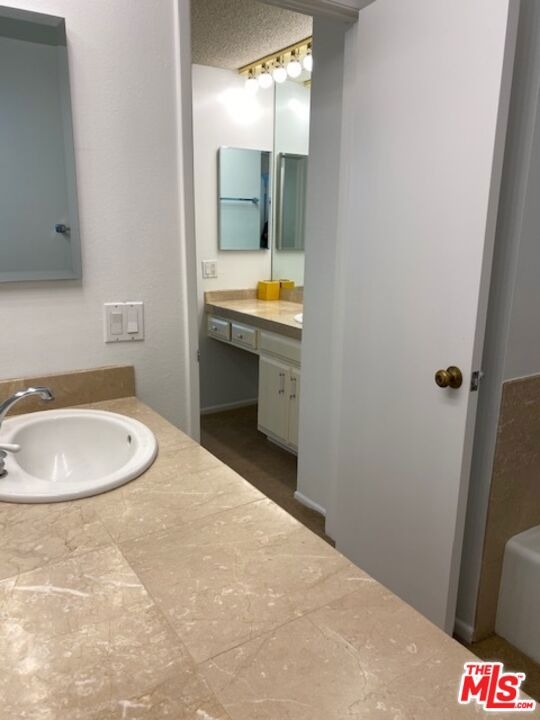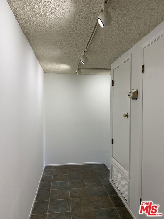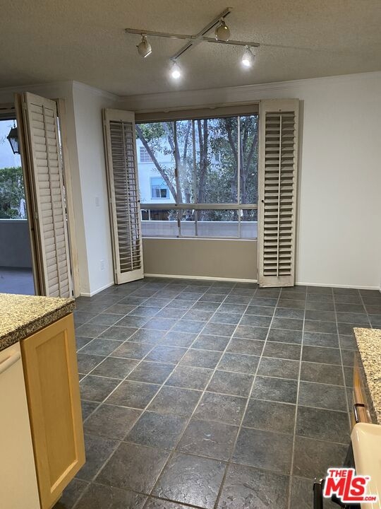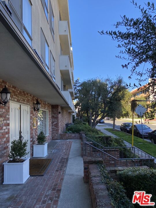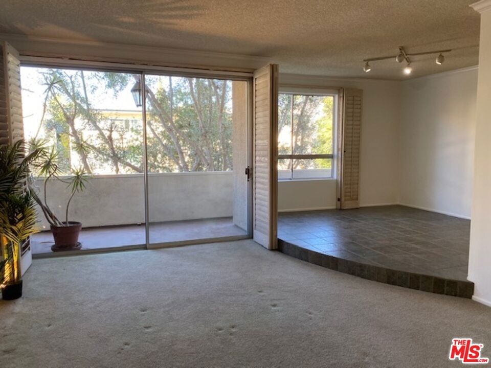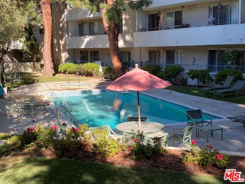 Lovely spacious 2 bedroom condo on a quiet tree-lined Westwood street. Unit has been very well maintained by long-time owner, with upgrades in kitchen and baths. Washer and dryer in kitchen are located next to large pantry and nook with eating bar. Stone covers the floors in the entry, kitchen and dining area. A gas fireplace and plantation shutters enhance the step-down living room. In the en-suite master bedroom are a large walk-in closet, a bathroom with 2 sinks and tub in dressing area, plus a shower in the separate toilet room. The second bedroom, used as an office, has built-in shelves and desk. The large balcony extends almost the full front of the unit. The oversized assigned tandem parking space can hold 2-3 cars, and there are 4 storage lockers in the building assigned to this unit. The complex has a park-like area in the back with a large swimming pool and spa.
