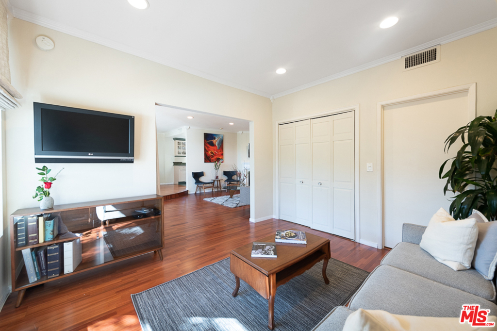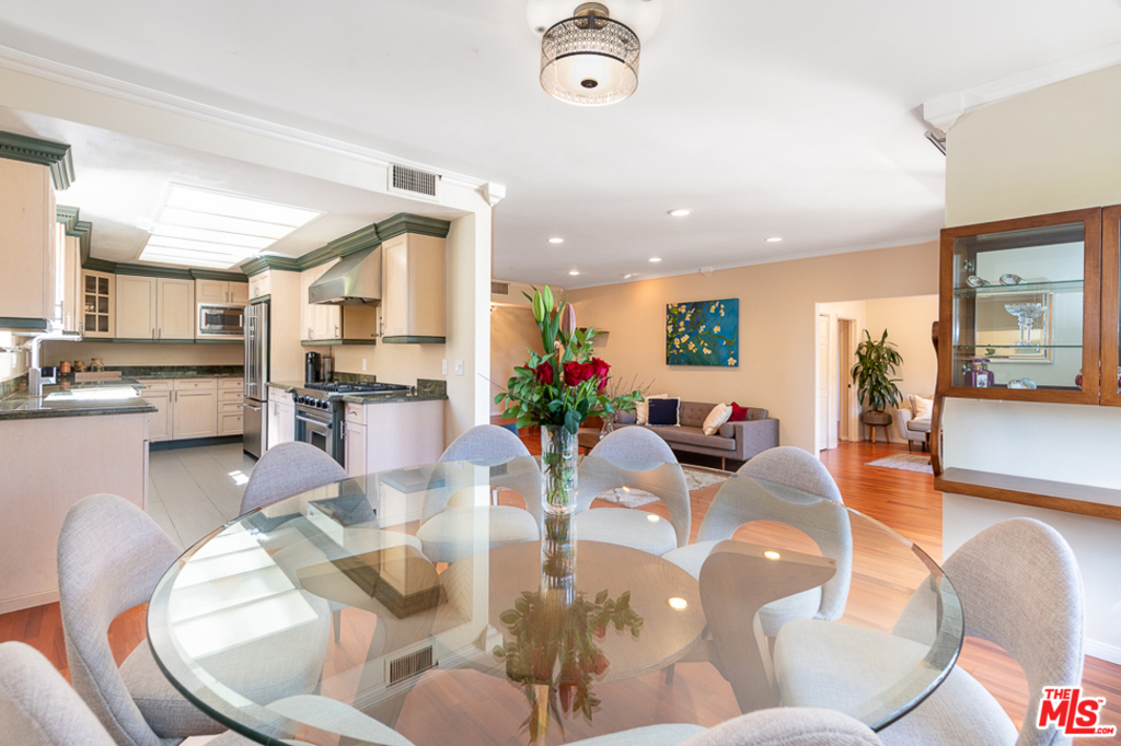 "The Westwood " One of the most prestigious addresses in Westwood . Beautiful quiet tree lined street in prime location, close to all shops, restaurants, Century City Mall, Theaters etc. This is currently the only unit available in this wonderful boutique building. This quiet rear corner unit which was completely remodeled features 2 beds 2 bath, second bedroom was opened up to be a den/office , large living room, great dining area, hardwood throughout, Custom granite kitchen with high end 6 burner Viking range, Jen air refrigerator & custom cabinets, washer & dryer inside unit, large private balcony with treetop views, master bath has steam shower and oversized walk in closet. This unit is the best quiet location in the building, two car tandem parking and two storage units. This Building has beautiful pool/ spa area that feels like a luxury hotel .Building also includes EQ Insurance.. This is a one of a kind.. Move in and bring your tooth brush..