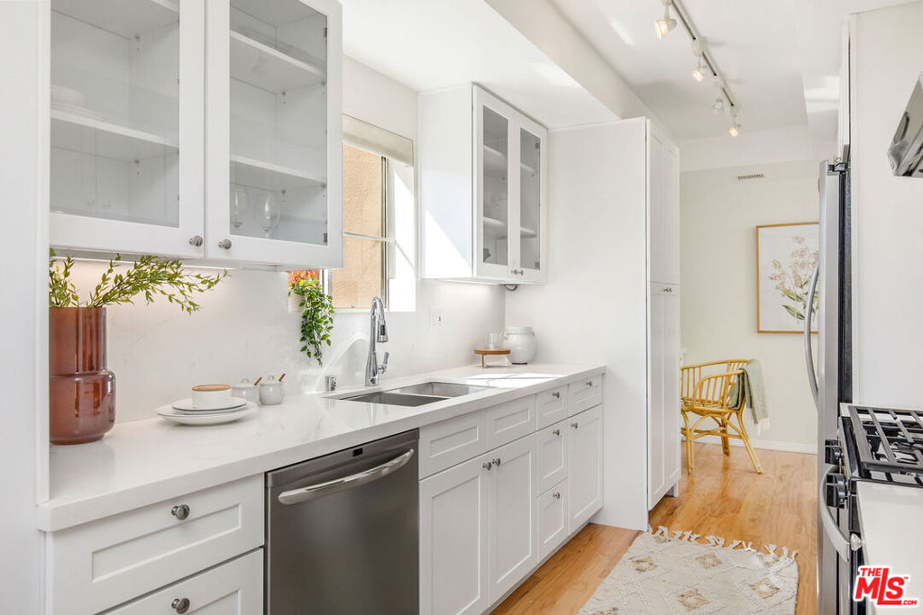 Welcome to The Westwood House - a bright and spacious 2-bedroom, 2-bath condo located in one of Westwood's most desirable pockets. This quiet, well-maintained building is just minutes from Century City Mall, Beverly Hills, Westwood Village, and UCLA, with Fairburn Ave Elementary School right around the corner. This unit features beautiful Century City views from a private balcony, two generously sized bedrooms and a renovated kitchen with a gas range and plenty of counter space. The primary suite offers a walk-in closet and a spacious bathroom with a soaking tub, and a separate shower. Additional highlights include central HVAC, a dedicated dining area, an in-unit washer/dryer and two gated side-by-side parking spaces located conveniently near the elevator. Residents enjoy premium building amenities such as a pool, hot tub, and an outdoor turf pad perfect for dogs. Whether you're relaxing at home or exploring the best of LA's Westside, this home offers the ideal balance of comfort and city living.