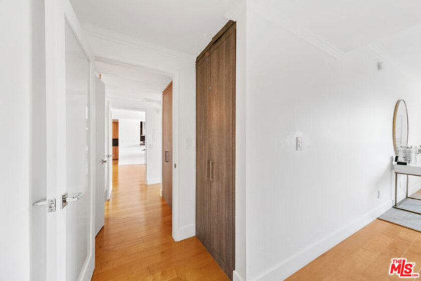 Remodeled 2 bed & 3 bath penthouse on top floor, front, south facing, breathtaking views of famous Mormon Church and tree line in all rooms in a very quiet street where you hear only the birds sing! Very light, bright & sunny throughout. High ceilings.large living area leading to large garden balcony. Gorgeous kitchen w/Zebra cabinets & Caesar stone countertops that opens to the spacious dinning & living room with cozy breakfast nook. Luxurious bathrooms filled w/walls of glass & mirrors. Master suite features a costume built walk-in closet and costume built wall closet. Large master bathroom features a generously sized shower w/ combination of stainless glass mosaic title linear & marble w/rain shower. Maple hardwood floors throughout. Lots of linen closets and huge storage closet throughout the hallway. Dual windows. Very specious storage area in gated garage. Pool,Spa, sauna & Gym with outdoor relaxation area perfect for entertainment. Elegant lobby. Close to UCLA, Century City Mall, Beverly Hills, beaches & freeways. Healthy HOA reserve budget. No special assessment. Easy to show.