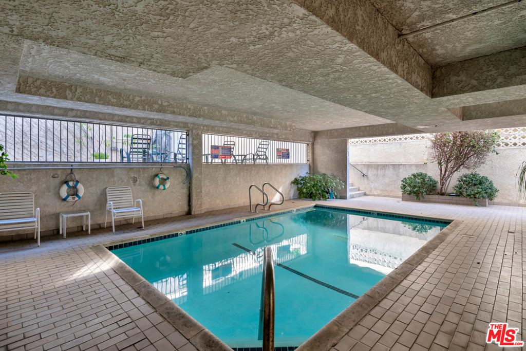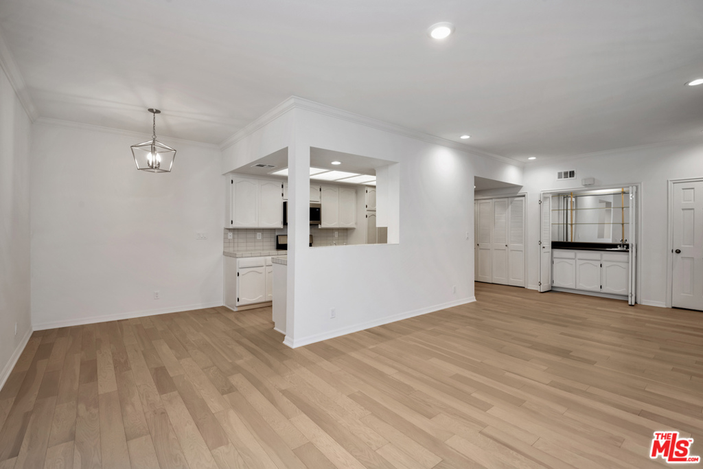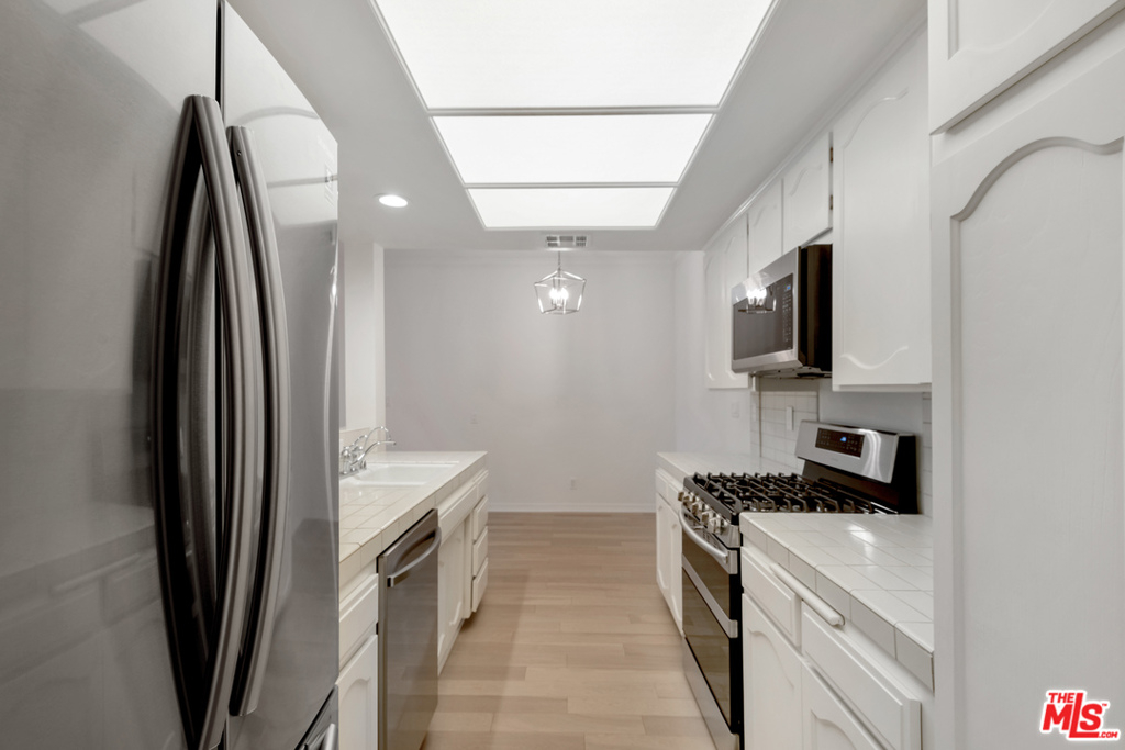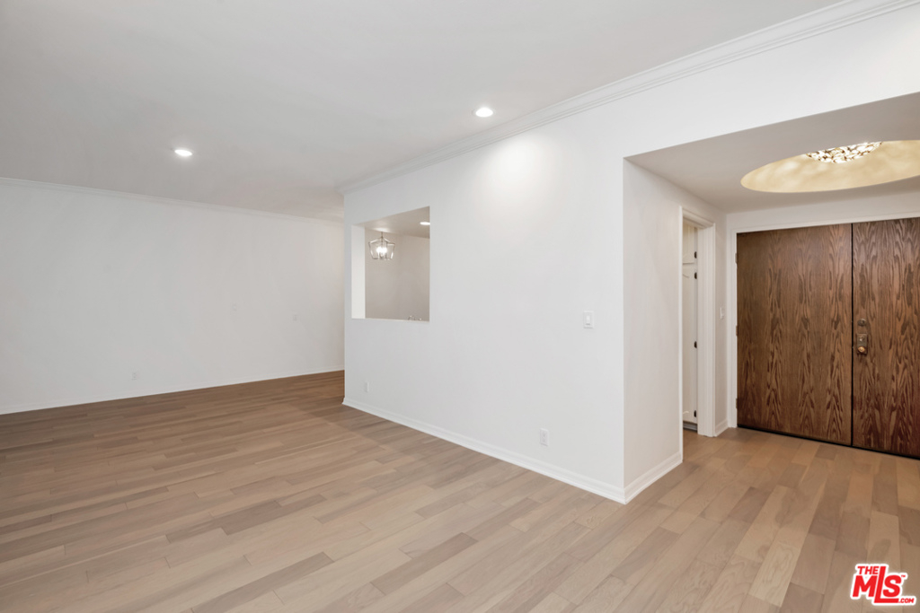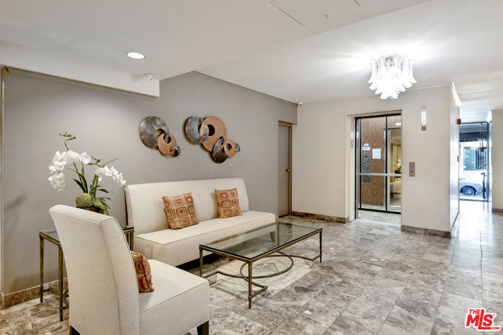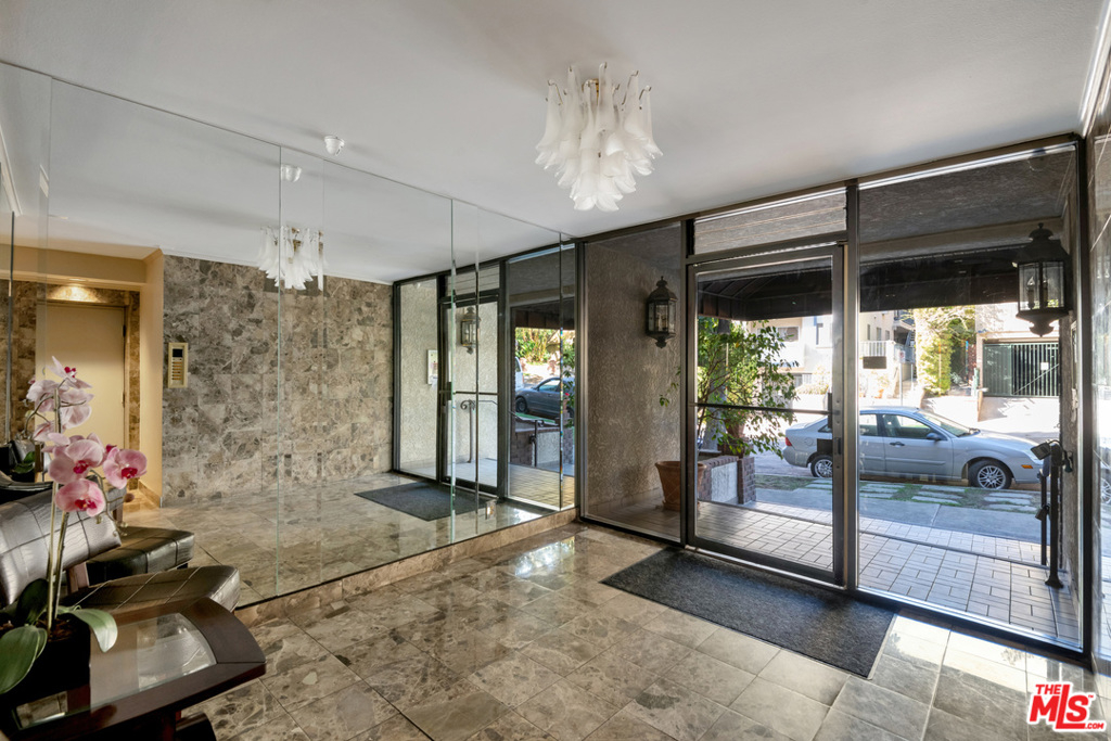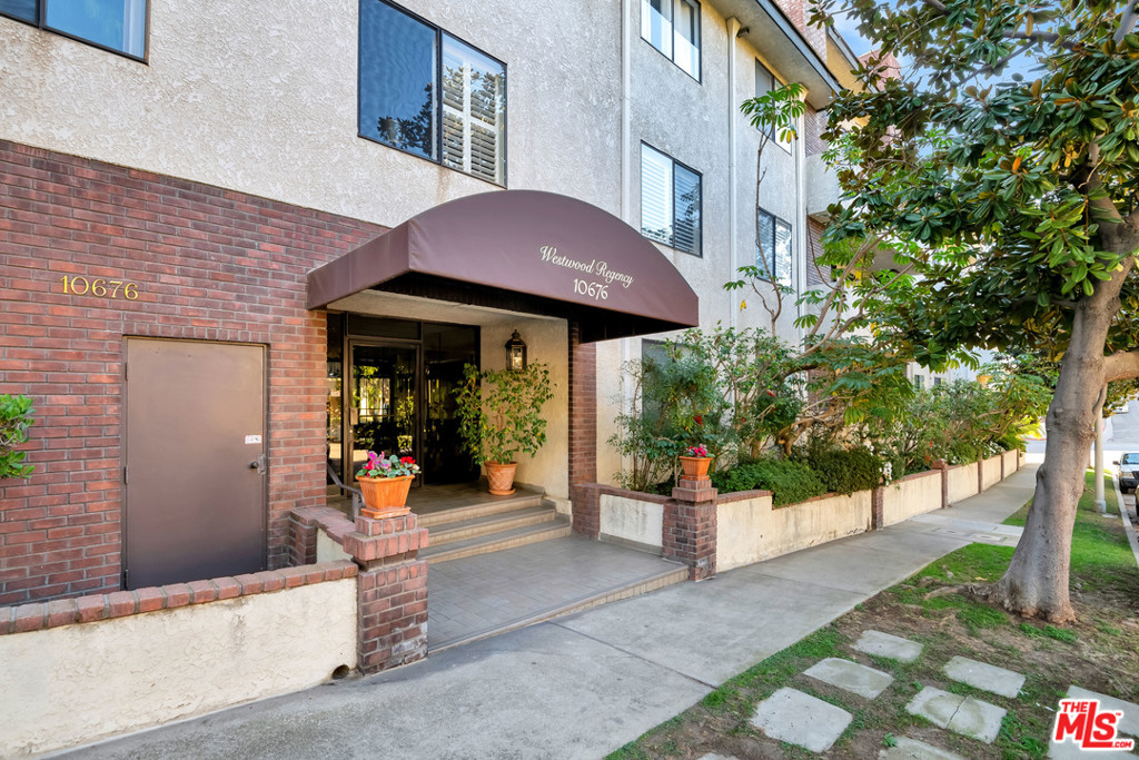 Prime Westwood, designer renovated 2 bedroom, 2 bath front facing unit -located on a quiet street! Stunning double door entry with foyer opens to a spacious 1,621 s.f. ( per assessor) home. Huge living room with high ceilings, wet bar, and a beautiful Carrera Marble fireplace! Serene balcony with peaceful views of the magnolia trees lining the street! New Appliances in kitchen, Carrera marble slabs in baths, recessed lights, new flooring throughout. Huge closets in primary bedroom, washer / dryer hookup in unit. Building features gym, pool, spa & sauna, banquet room with full kitchen .Low HOA dues, earthquake insurance inclusive. Secured parking for 2 cars, ( Tandem).